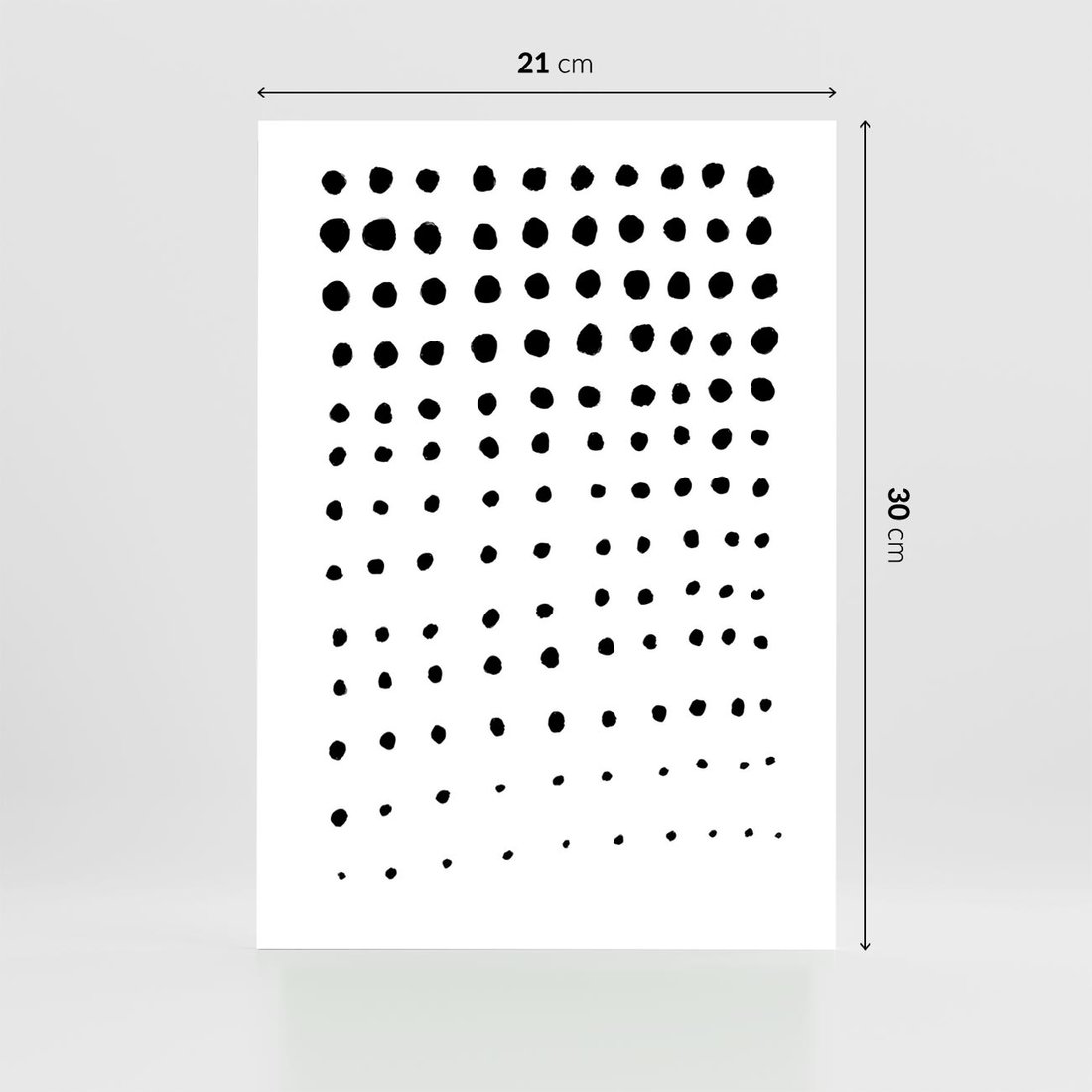 Plakat bez ramy 21x30 - Abstrakcyjna Transformacja - abstrakcyjna kompozycja z czarnych kropek, minimalistyczny czarno bialy plakat
