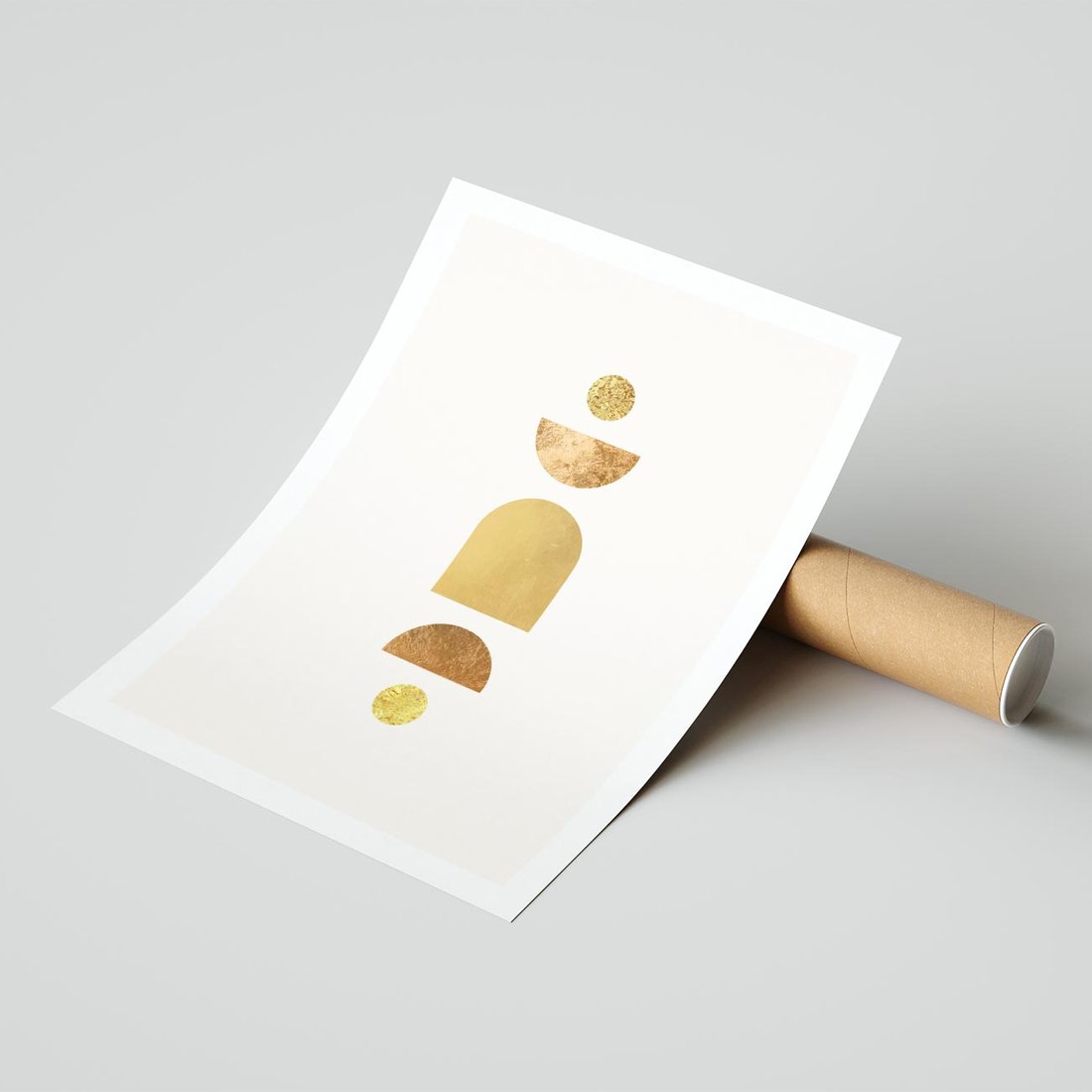 Złote geometryczne kształty tworzą piękną teksturę na minimalistycznym tle. Ten elegancki plakat jest idealny do dodania szyku i wyrafinowania do każdej przestrzeni.