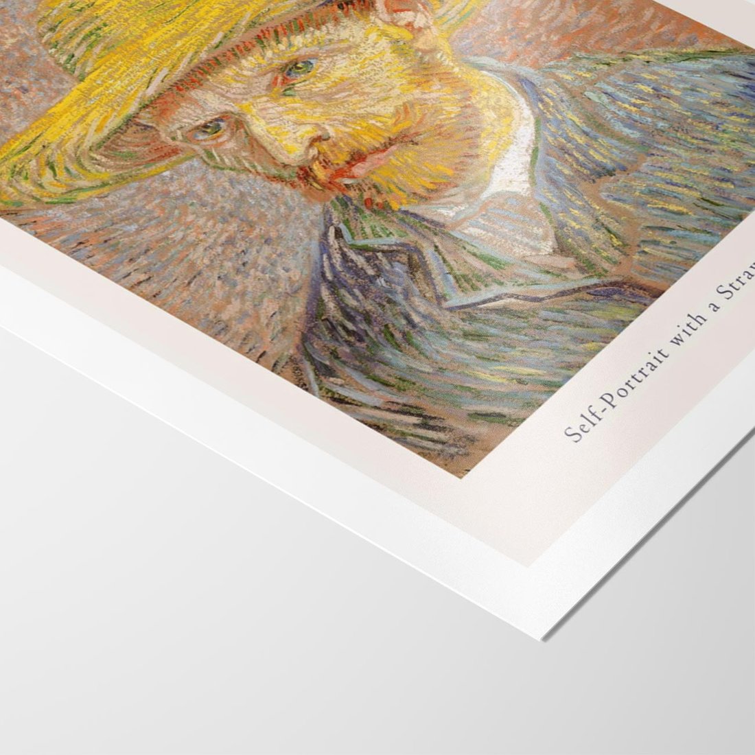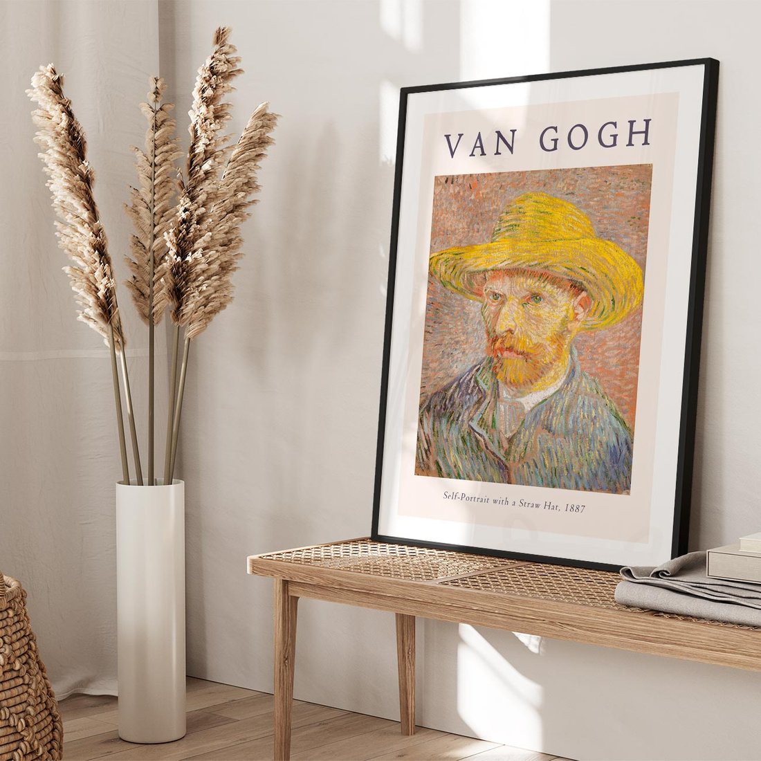 Reprodukcja autoportretu Vincenta van Gogha, wzbogacona o artystyczną typografię, tworzy wyjątkowy plakat oddający charakterystyczny styl malarza.