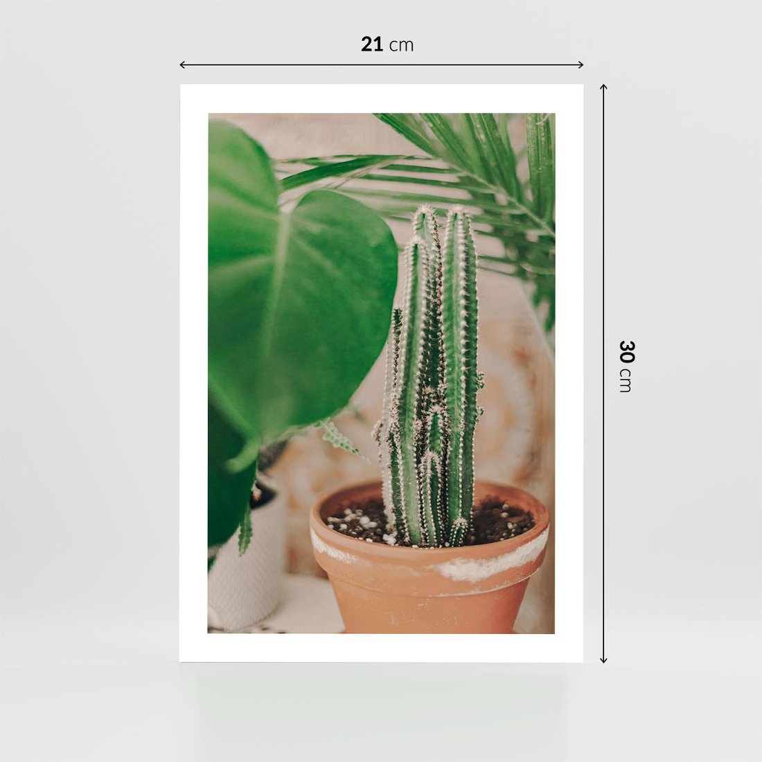 Plakat bez ramy 21x30 - Boho Urok - kaktus w doniczce, gliniana doniczka