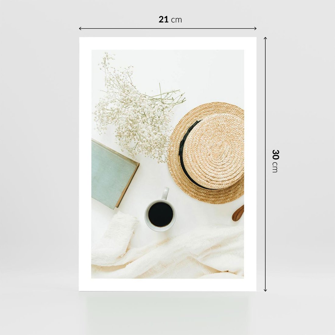 Plakat bez ramy 21x30 - Boho Urok - kompozycja boho, slomkowy kapelusz
