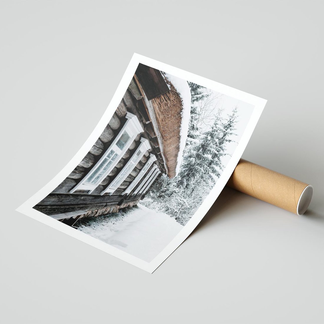 Plakat bez ramy 21x30 - Cicha Zima - zima, domek w górach
