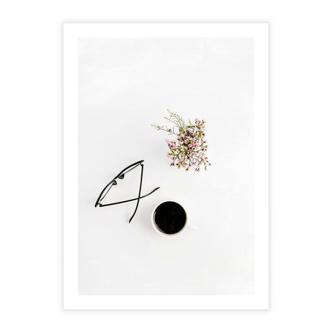 Nasza kompozycja to połączenie harmonii natury z codziennymi elementami życia. Ta urocza kompozycja przedstawia bukiet kwiatów ustawiony obok filiżanki kawy i okularów, tworząc wyjątkowy i inspirujący obraz. To idealna dekoracja, aby wprowadzić do swojego wnętrza atmosferę spokoju i radości.