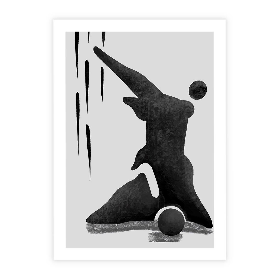 To nowoczesna grafika w czarno-białym stylu, przedstawiająca abstrakcyjną postać. Plakat ten łączy w sobie nowatorski design z minimalistycznym podejściem.