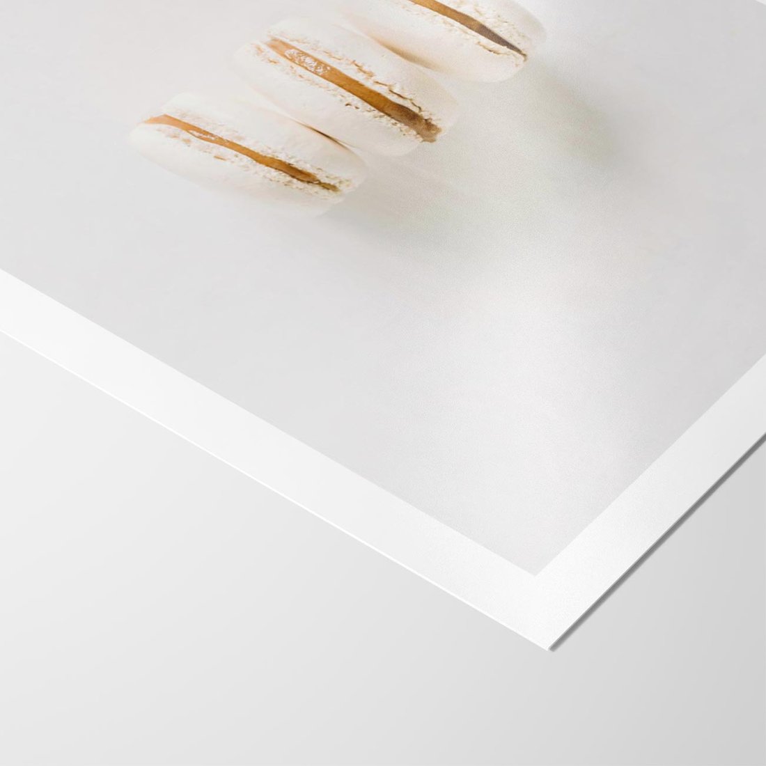 Plakat bez ramy 21x30 - Delikatność w Bieli - białe ciateczka. makaroniki, minimalistyczne zdjęcie