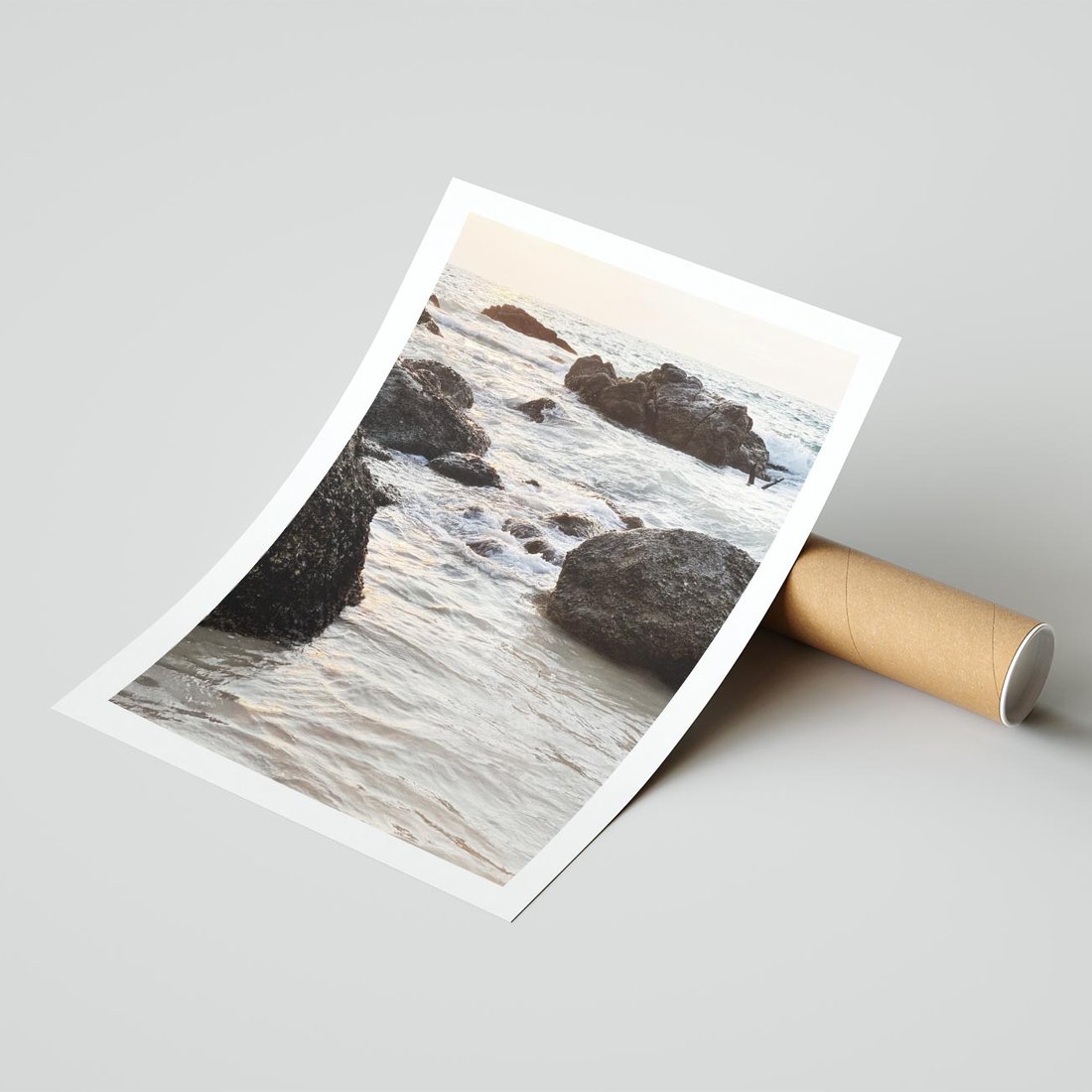 - Plakat bez ramy 21x30 - Dramatyczna Sceneria: Morze i Skały nad Brzegiem