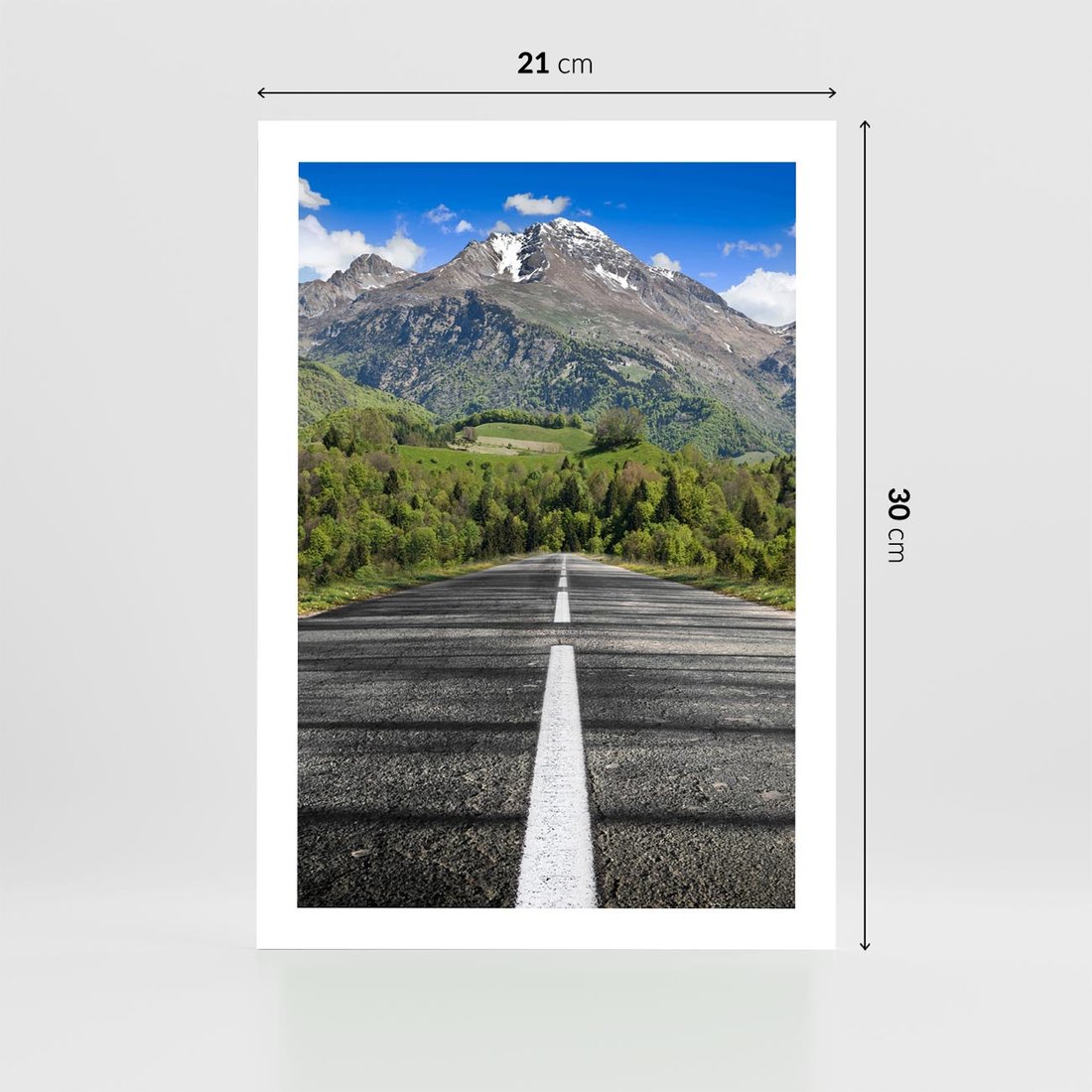 Plakat bez ramy 21x30 - Droga przez góry: podróż do przygody - droga, góry