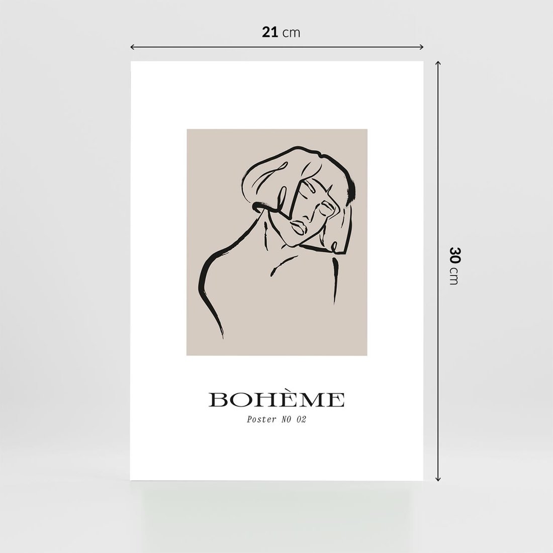 Ten boho plakat ukazuje wyjątkowy portret kobiety w minimalistycznym stylu, wzbogacony subtelnie umieszczoną typografią. To hołd dla naturalnej urody i harmonii. Wyjątkowość tego dzieła leży w prostocie, która oddaje esencję piękna w każdym detalu, tworząc spokojną i inspirującą atmosferę.
