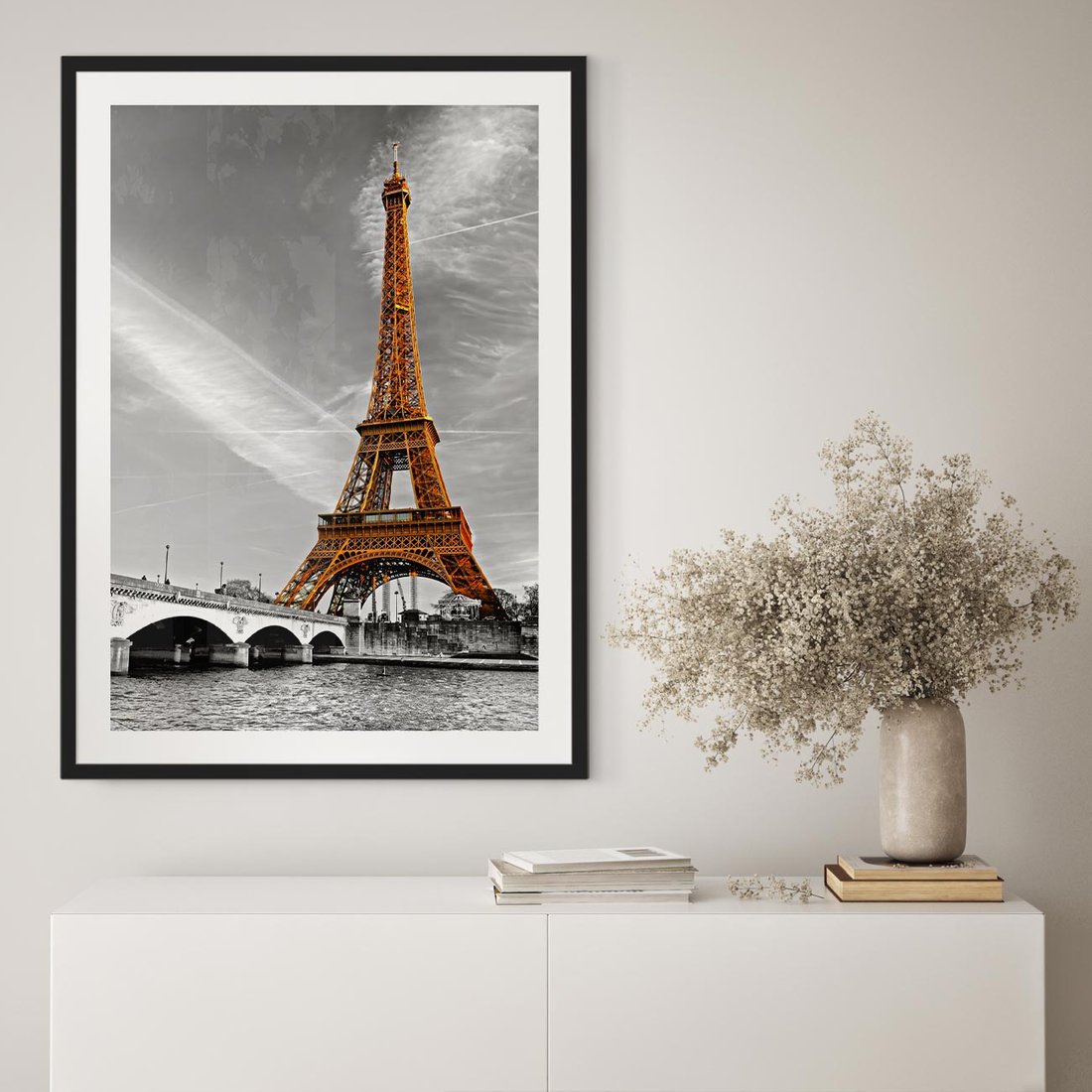 Ciesz się wyjątkowym widokiem wieży Eiffla w Paryżu na tym ujmującym obrazie. Jej elegancja i delikatność tworzą aurę romantyzmu i uroku. Ta kompozycja dodaje magii i romantyzmu, idealna dla miłośników piękna i ikon architektury.