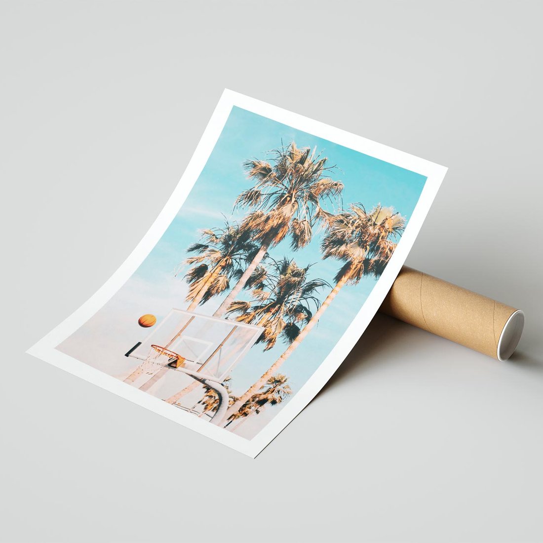 Plakat bez ramy 21x30 - Egzotyczna Koszykówka - palmy na tle nieba, koszykówka
