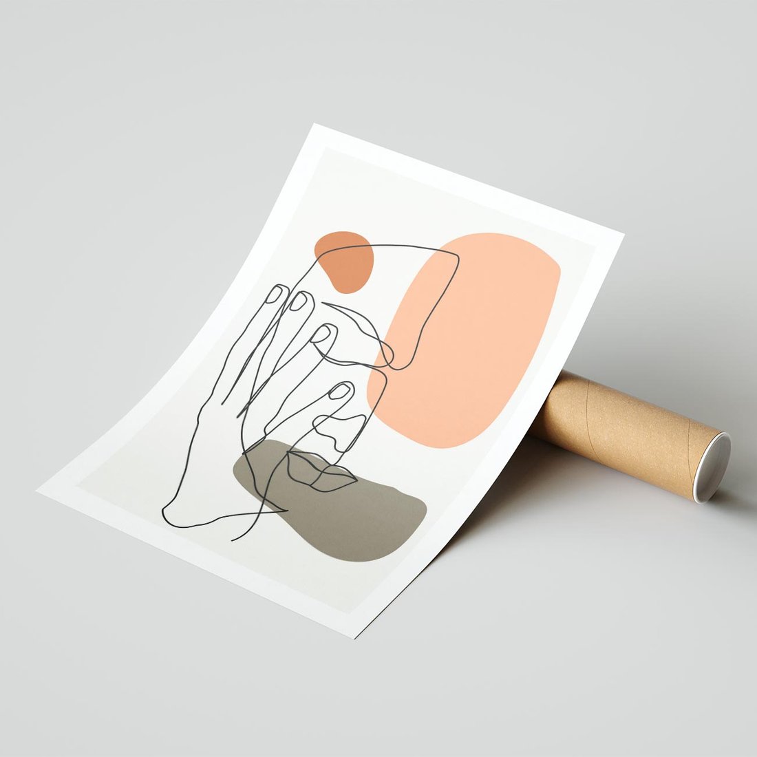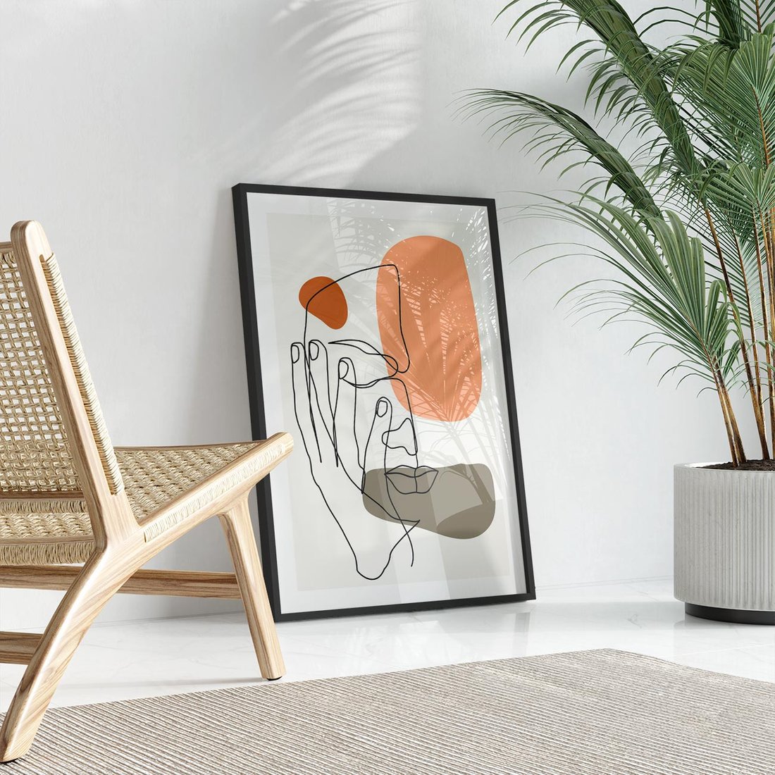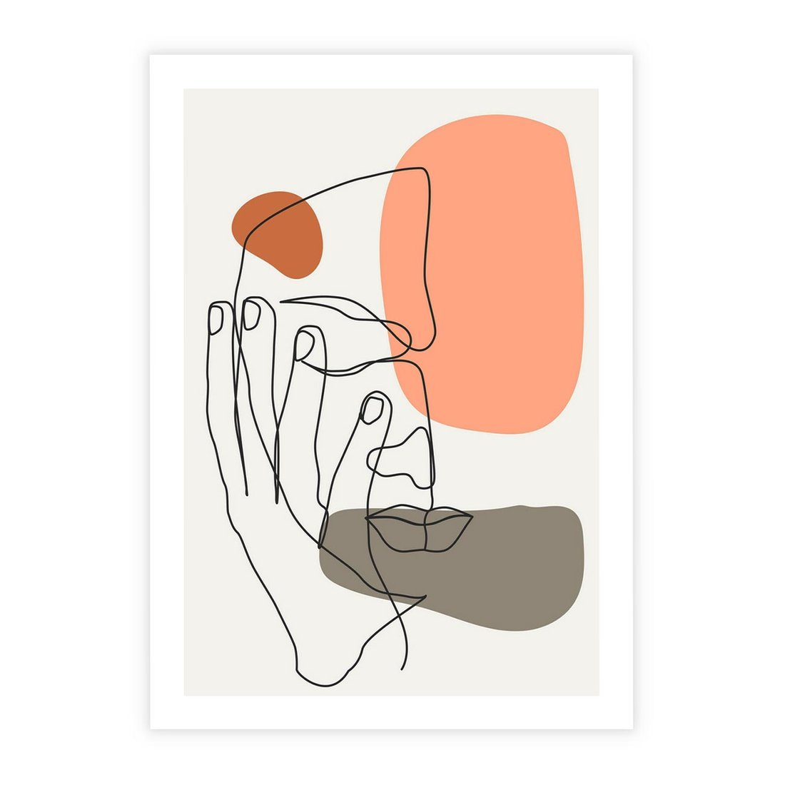 Plakat bez ramy 21x30 - Ekspresja Kolorów: Szkic - one line szkic twarzy, kolorowe plamy