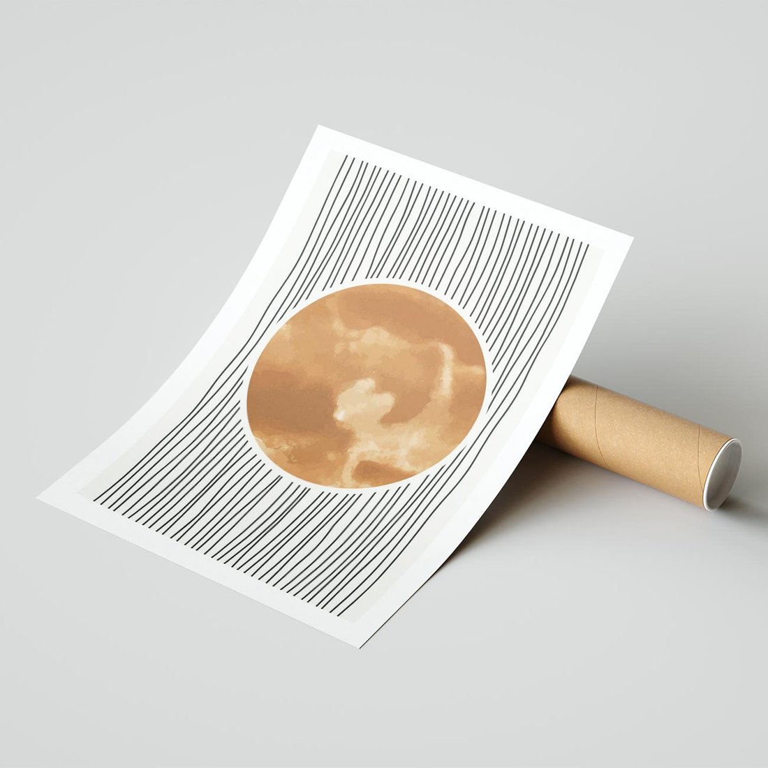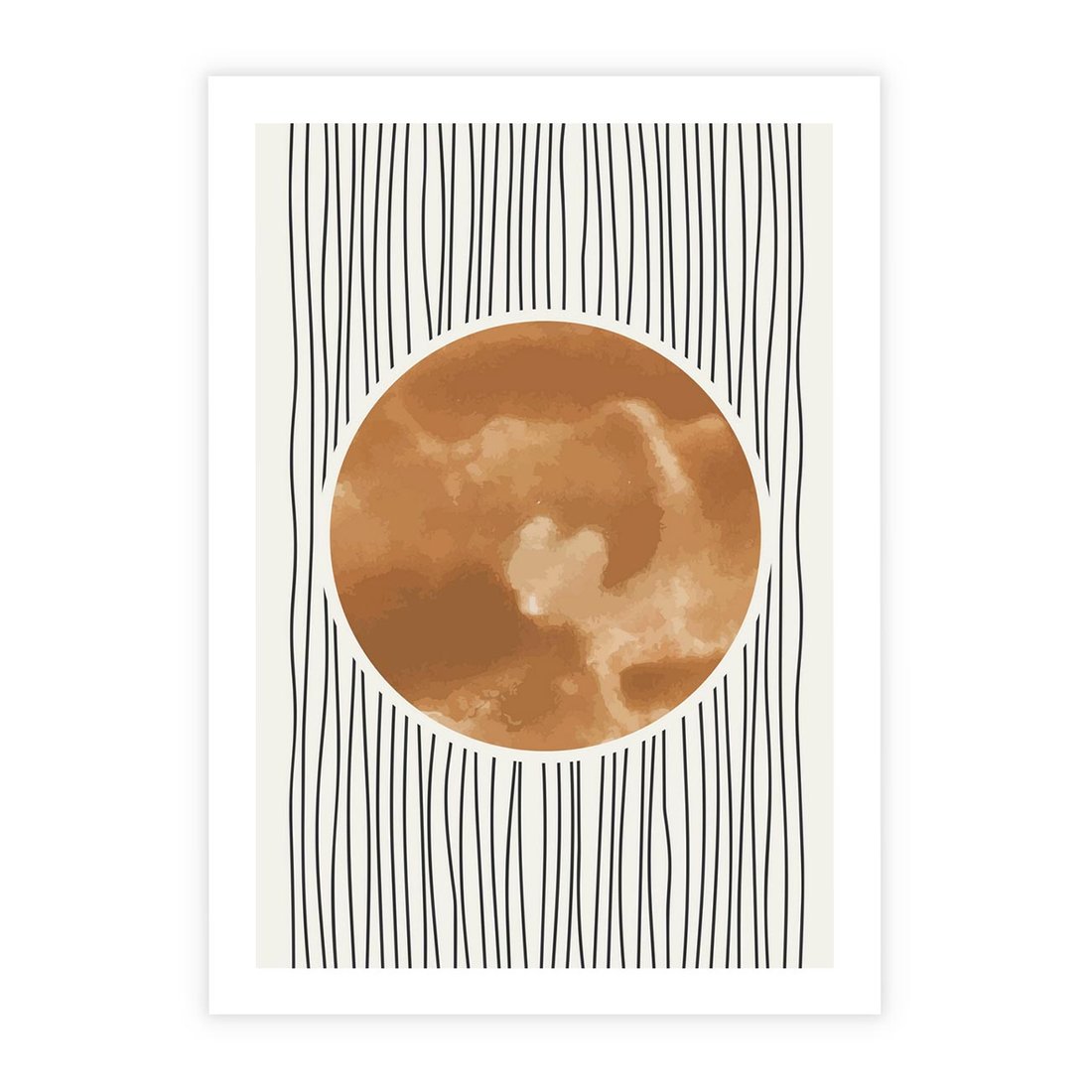 To minimalistyczny plakat w stylu boho prezentuje miedziane koło w połączeniu z geometrycznym szkicem. To kreatywne połączenie wprowadza do Twojej przestrzeni unikalną aurę boho, tworząc równocześnie interesujący akcent minimalistyczny.