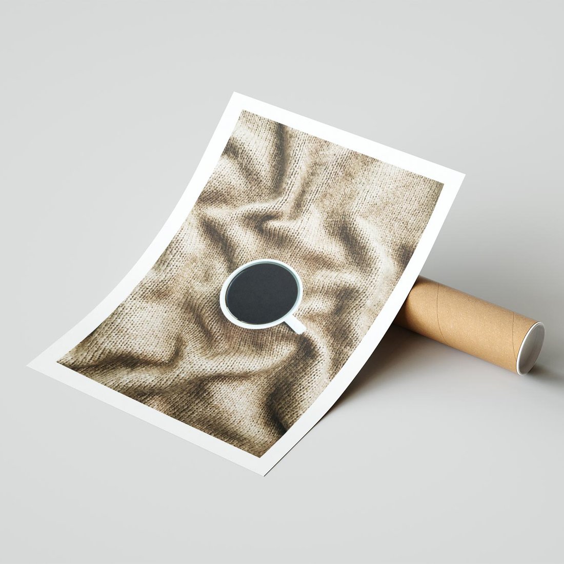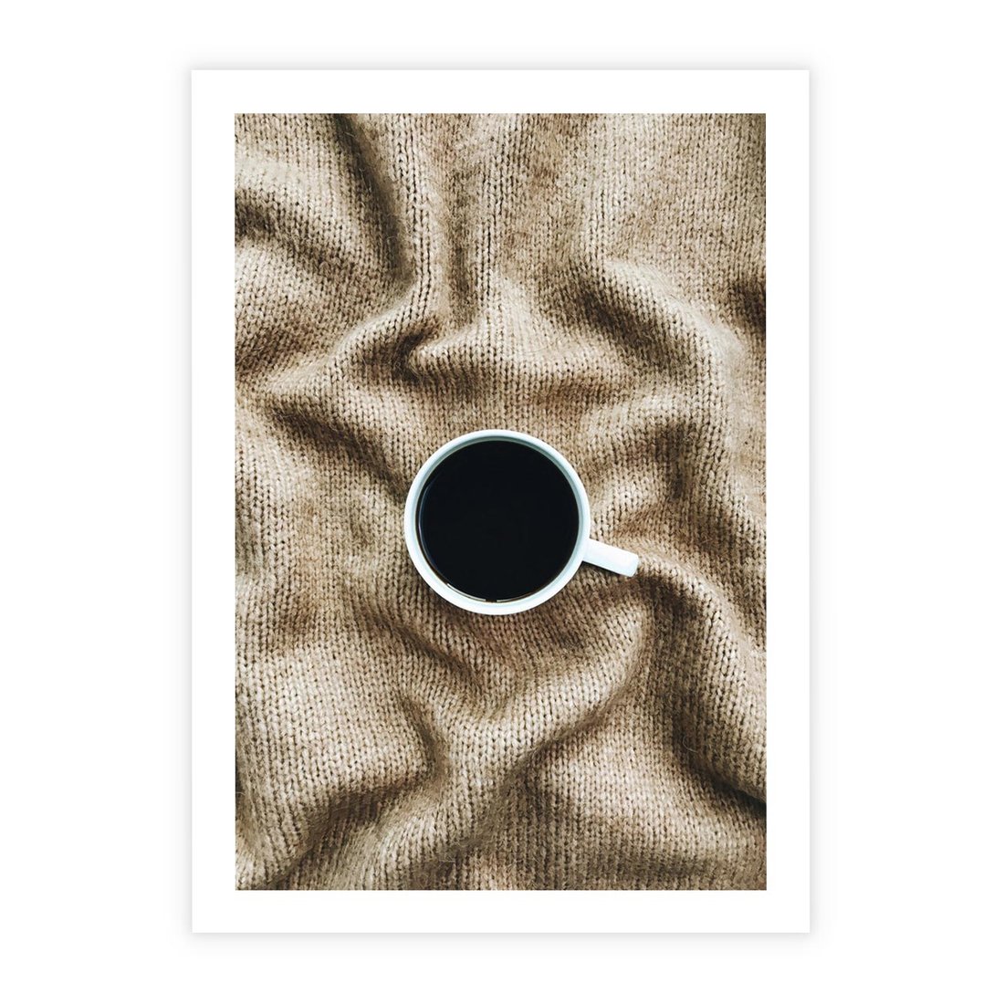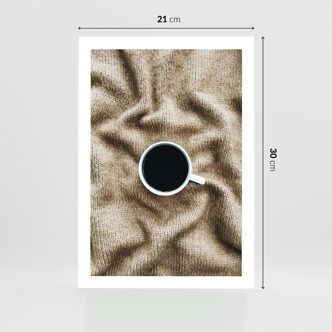 - Plakat bez ramy 21x30 - Filiżanka Kawy na Brązowym Kocu