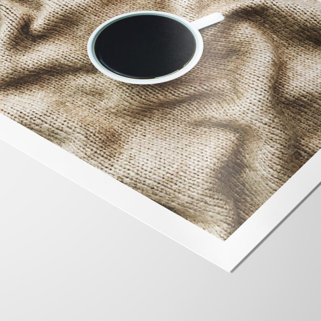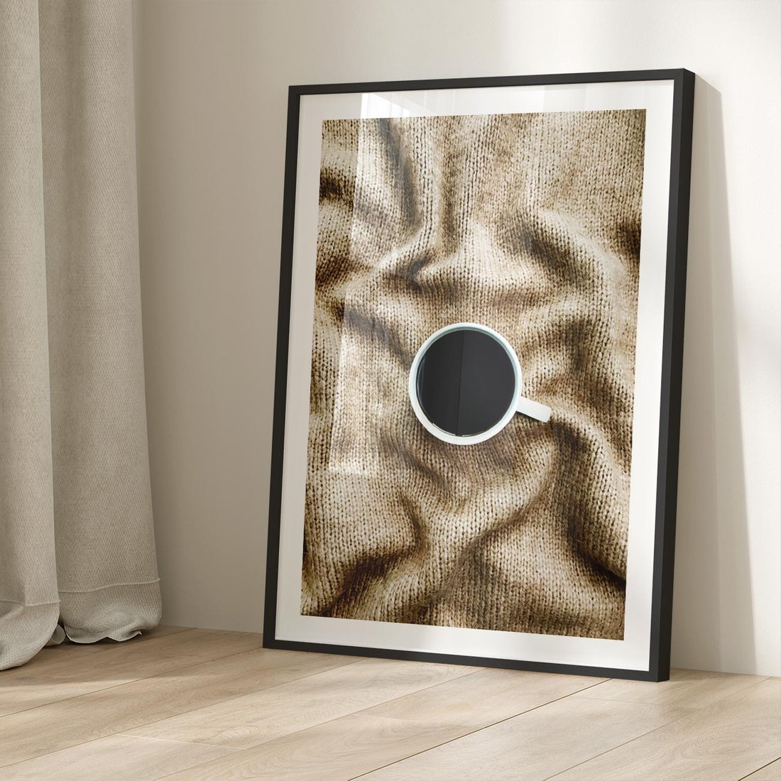 Plakat bez ramy 21x30 - Filiżanka Kawy na Brązowym Kocu - kawa, czarna kawa