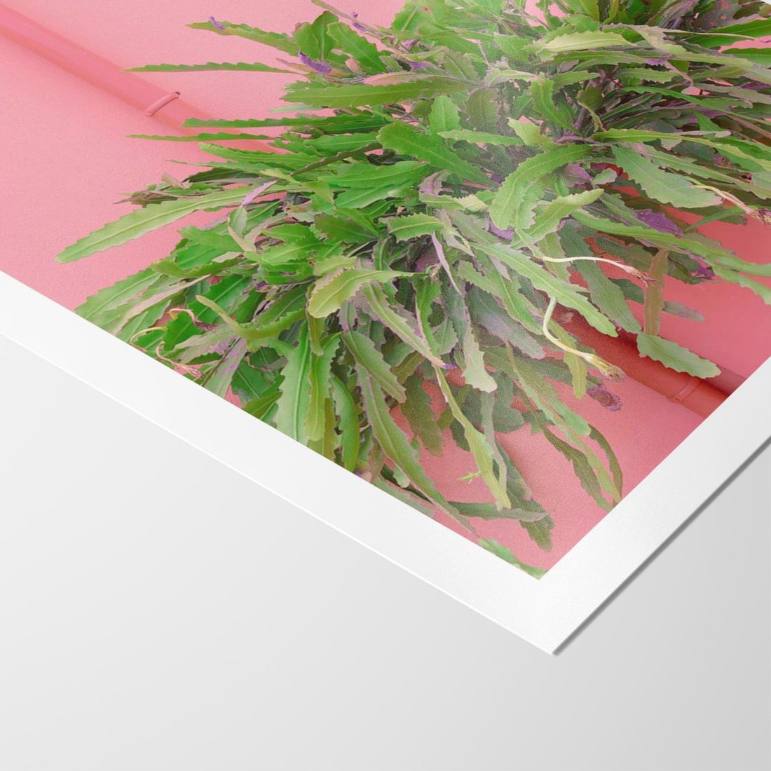 Plakat bez ramy 21x30 - Fotografia Rośliny z Różowym Tłem - fotografia, zielona roślina na tle różwj ściany