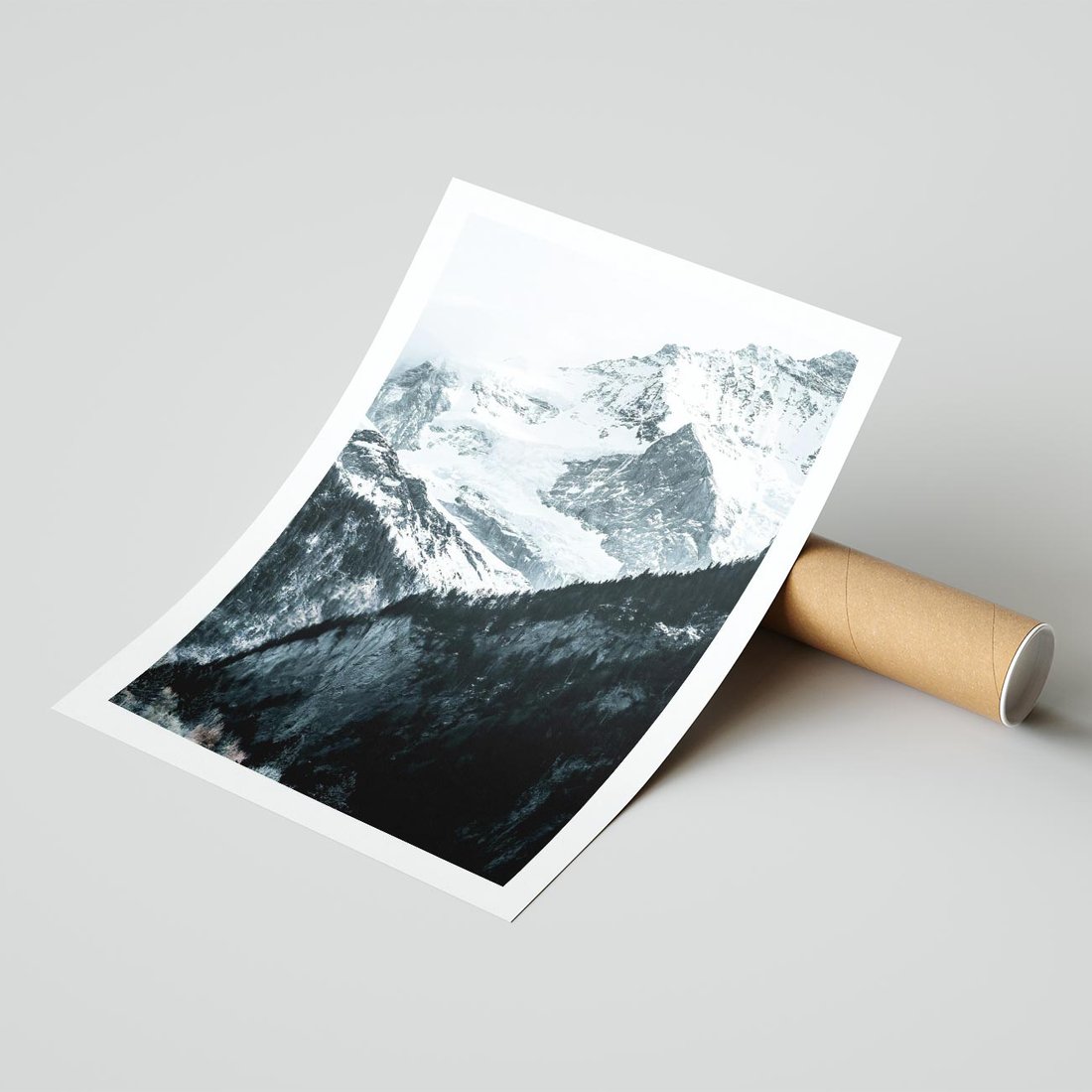 Plakat bez ramy 21x30 - Góry w Zimowym Uścisku - góry, ośnieżone szczyty