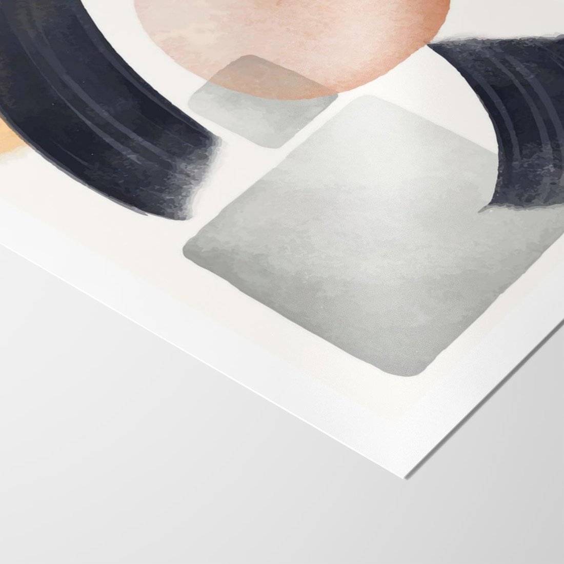 Obraz przedstawia abstrakcyjną grafikę z wykorzystaniem plam i kształtów. Ta kompozycja artystyczna doskonale podkreśla kreatywność i wyrafinowanie, idealnie pasując do wnętrz, które pragną wprowadzić unikalny charakter i ekspresję.