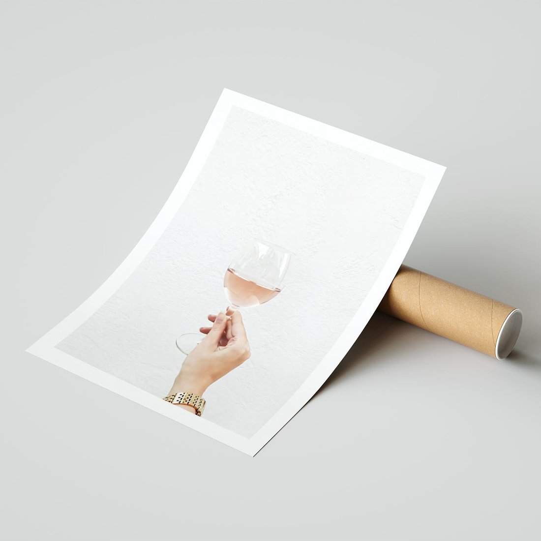 Plakat bez ramy 21x30 - Kobieca Dłoń i Różowe Wino - kieliszek różowego wina, kobieca dłoń