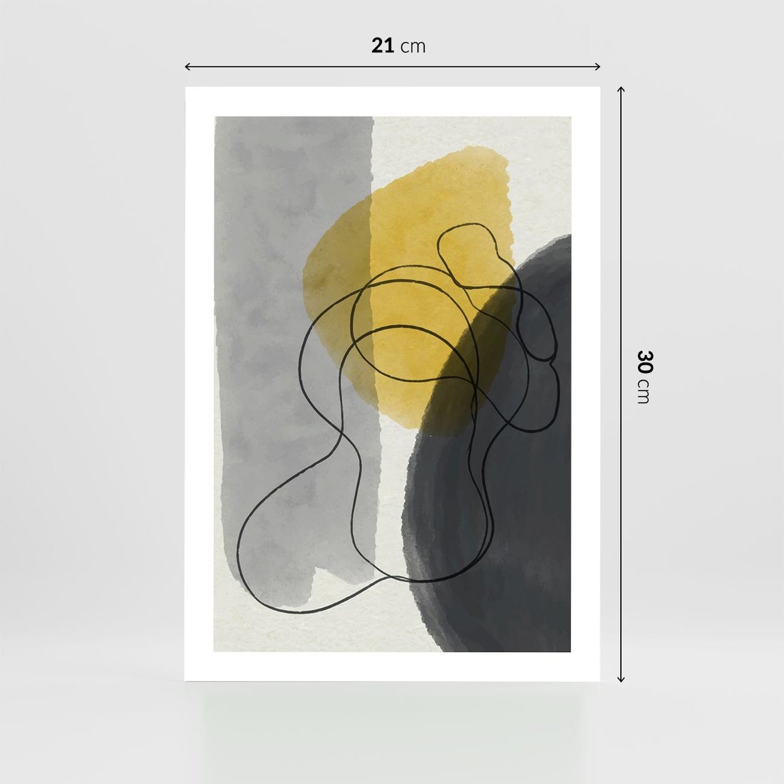 Nasz plakat to fascynująca abstrakcja z akwarelowymi plamami w kontrastujących odcieniach czerni i żółtego. To połączenie kolorów tworzy dynamiczną kompozycję, dodając energii i wyrazistości do Twojej przestrzeni.