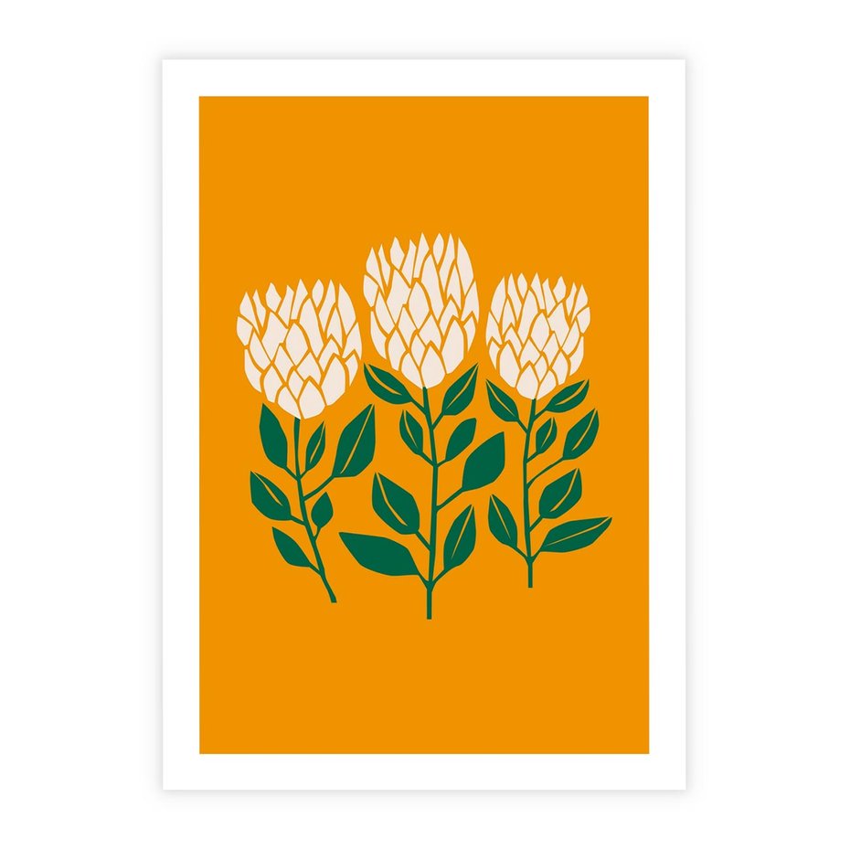 Plakat bez ramy 21x30 - Kolorowe Impresje - abstrakcyjna kwiatowa kompozycja, żółte mocne tło
