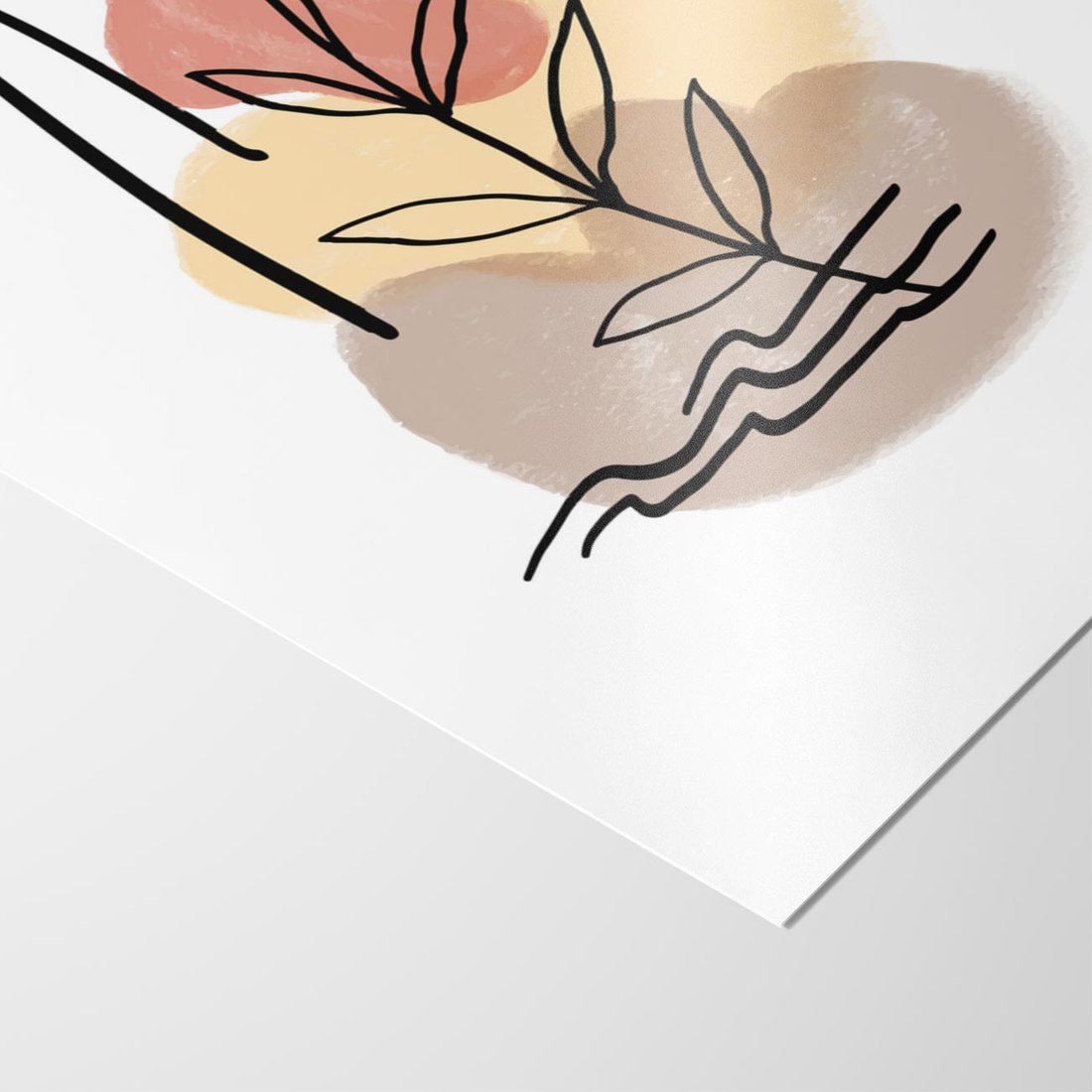 Nasz plakat to wyjątkowa abstrakcja w stylu nowoczesnej sztuki, łącząca czarny szkic z akwarelowymi plamami o elementach roślinnych. To artystyczne połączenie wprowadza do Twojej przestrzeni niezwykłą aurę, łącząc naturę i abstrakcję w wyrazistym wydaniu.