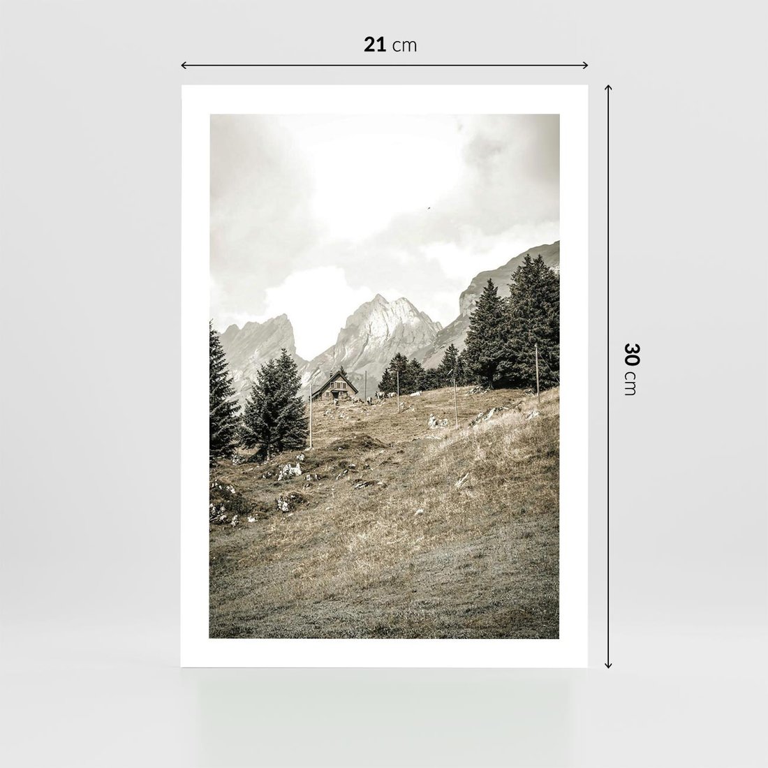 - Plakat bez ramy 21x30 - Krajobraz Sepii: Domek w Górach