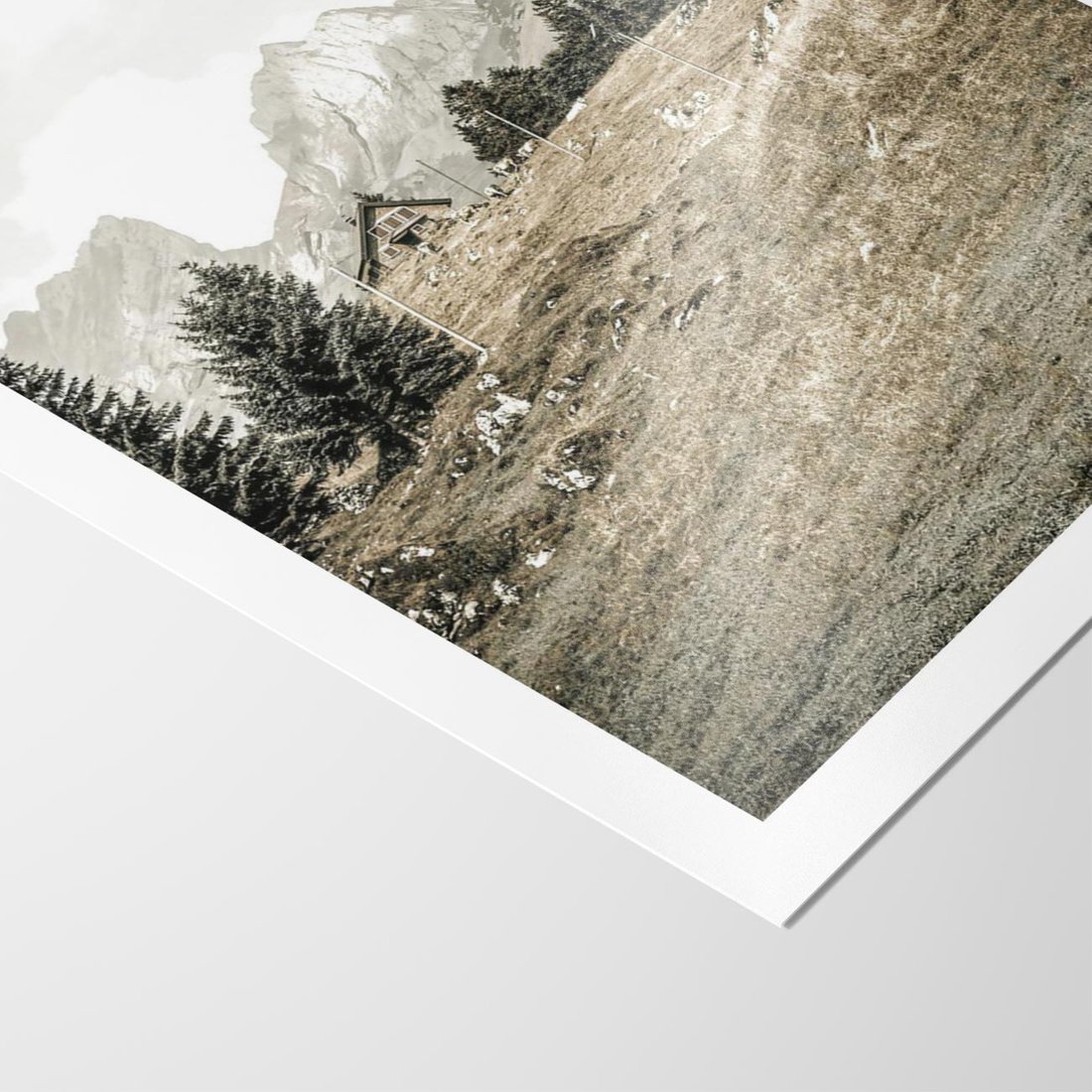 Plakat bez ramy 21x30 - Krajobraz Sepii: Domek w Górach - domek w górach, góry
