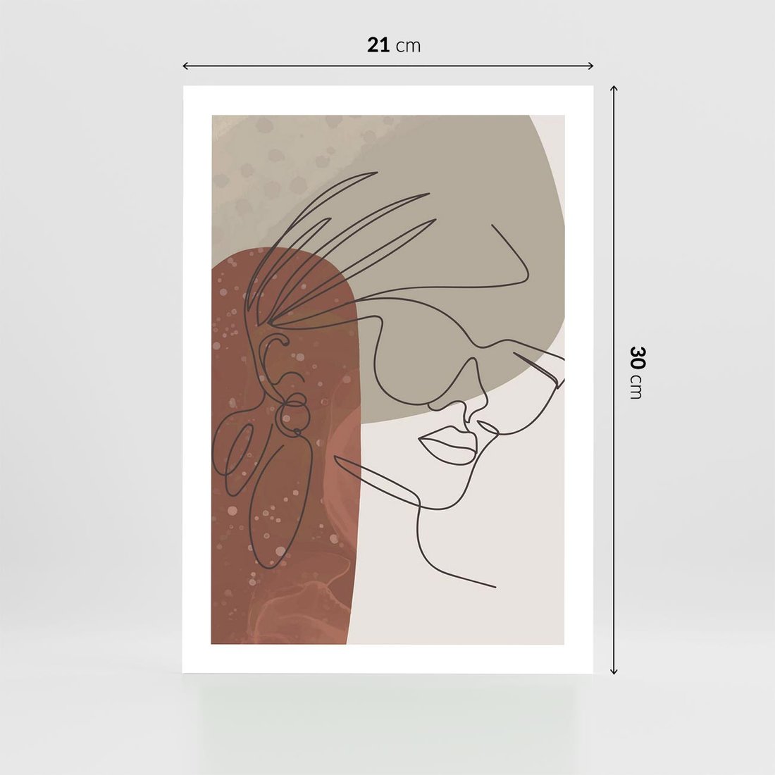 Obraz przedstawia abstrakcyjną grafikę, na której tło składa się z plam, a portret kobiety jest narysowany jedną linią. Ta kompozycja artystyczna wyraża kreatywność i oryginalność, idealnie pasując do wnętrz, które pragną wyrazić unikalny charakter.
