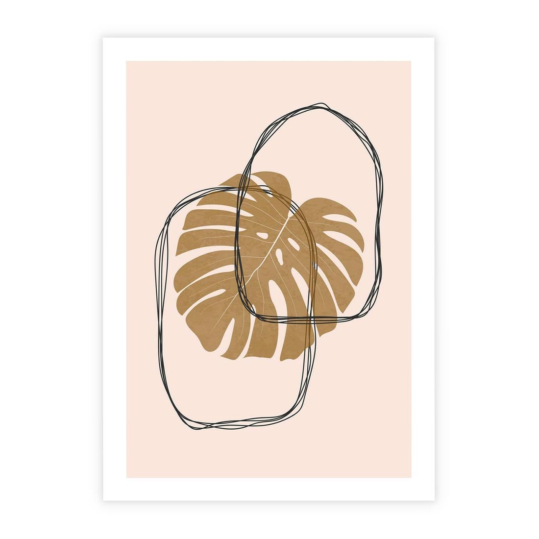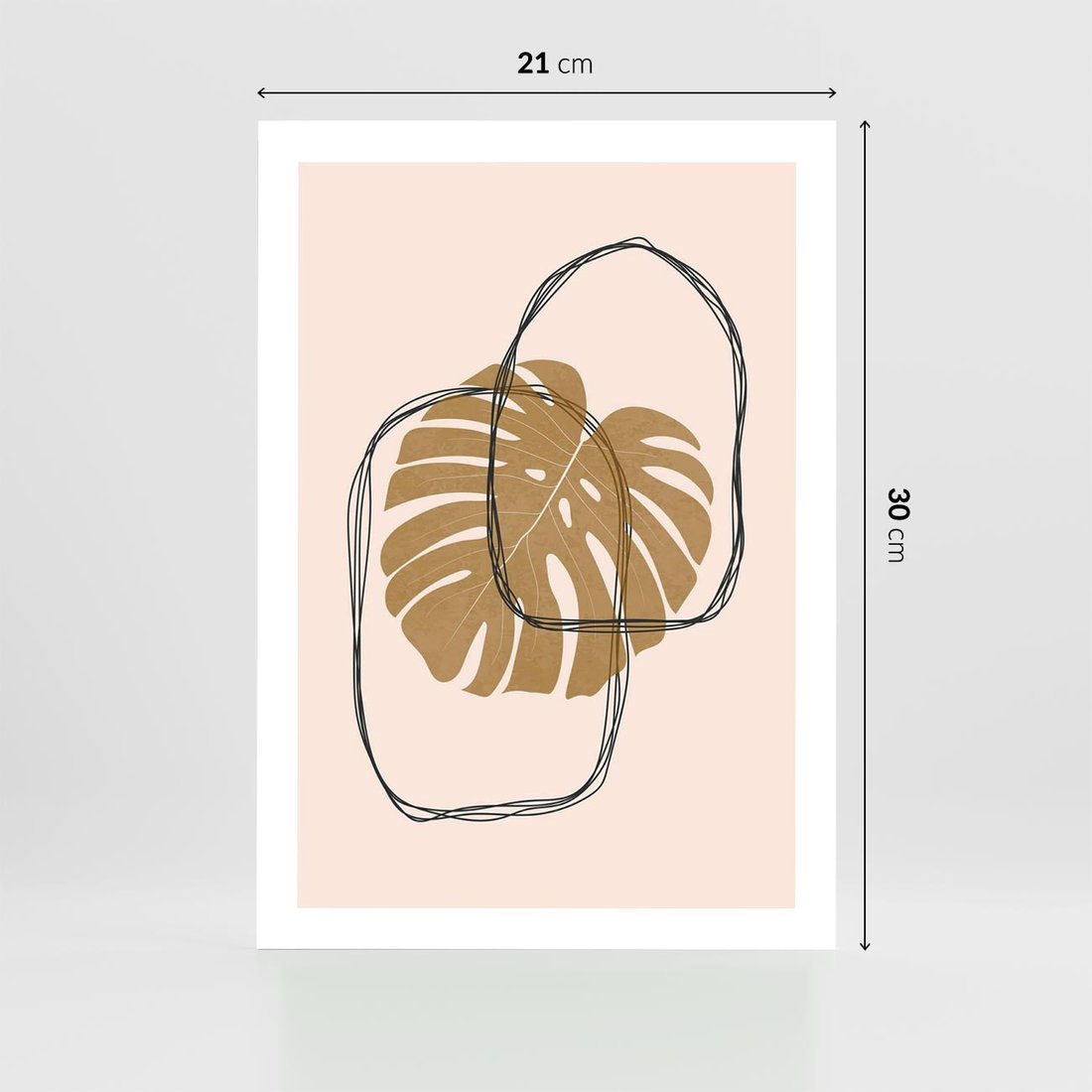 - Plakat bez ramy 21x30 - Liście w Beżowym Minimalizmie