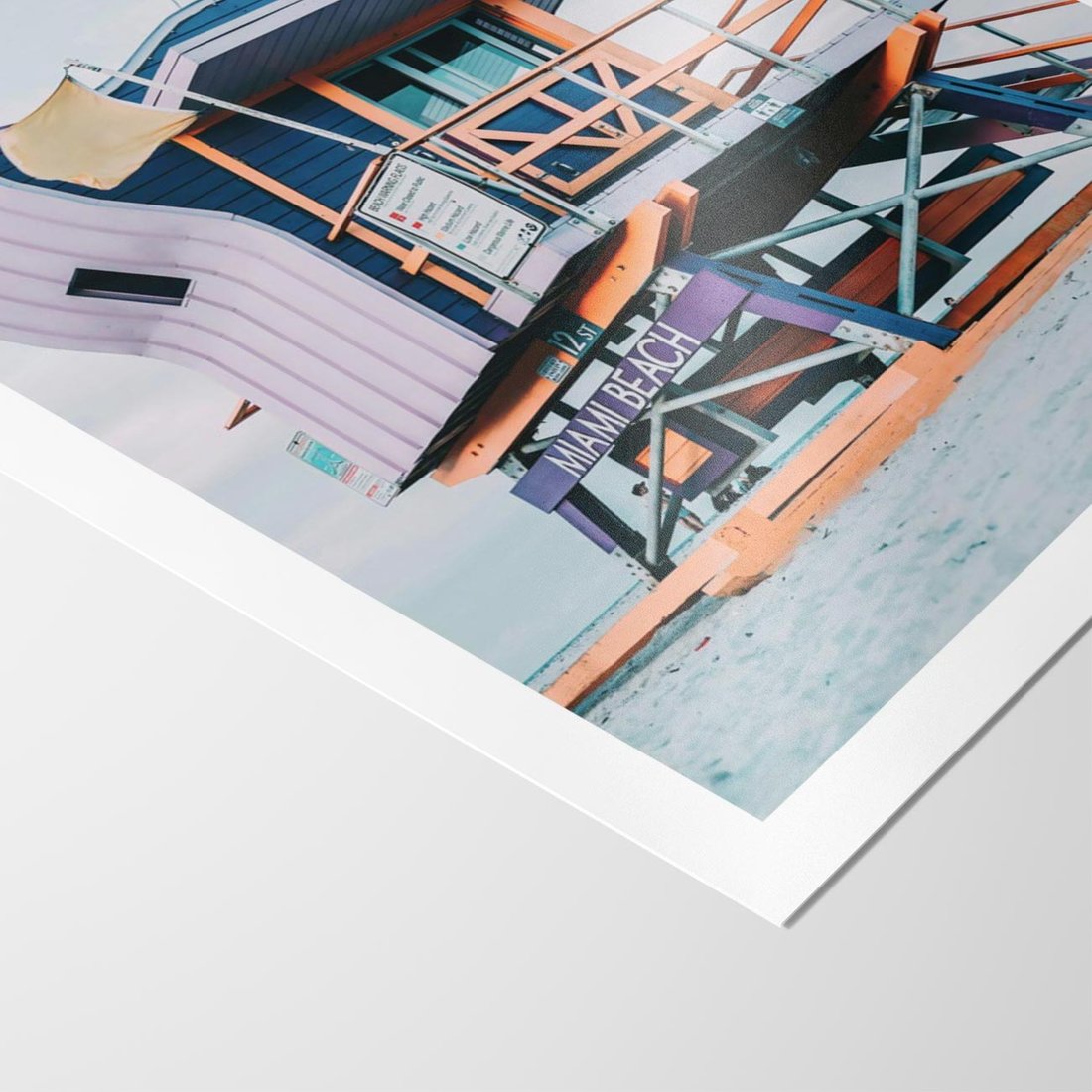 Plakat bez ramy 21x30 - Plażowa Kolorystyka: Budka Ratownika w Pastelach - pastelowa budka ratownika, plaża Miami