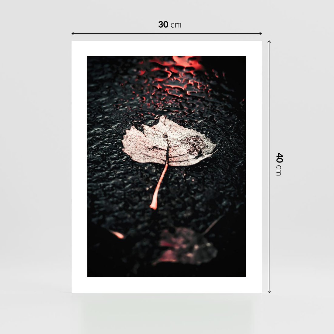 Plakat bez ramy 30x40 - Jesień w Detalu: Liść na Mokrej Drodze - liść, jesień
