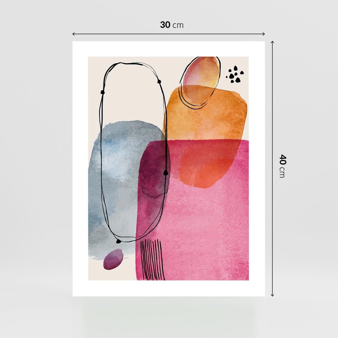 Kolorowe pastelowe plamy w rozmytych, żywych odcieniach, zdobione delikatnymi szlaczkami. To minimalistyczne dzieło sztuki, które wprowadza wibrację i subtelność do Twojej przestrzeni, tworząc kompozycję pełną wyrafinowanego minimalizmu.