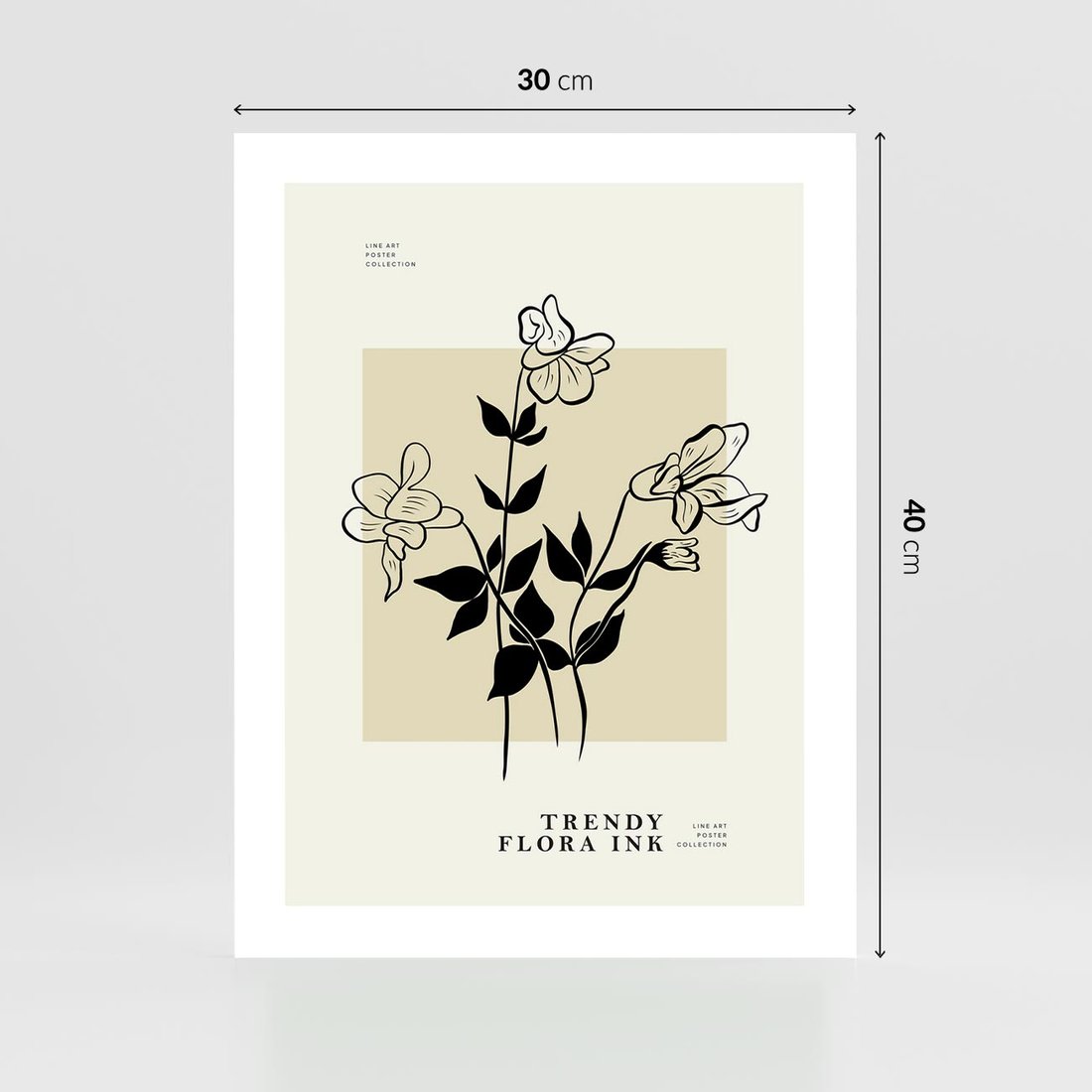 Piękne kwiaty w połączeniu z elegancką typografią tworzą minimalistyczną sztukę. Delikatny beżowy akcent dodaje subtelności całej kompozycji. To obraz, który wprowadzi do Twojego wnętrza przyjemny akcent roślinności, zachowując jednocześnie estetykę minimalizmu.