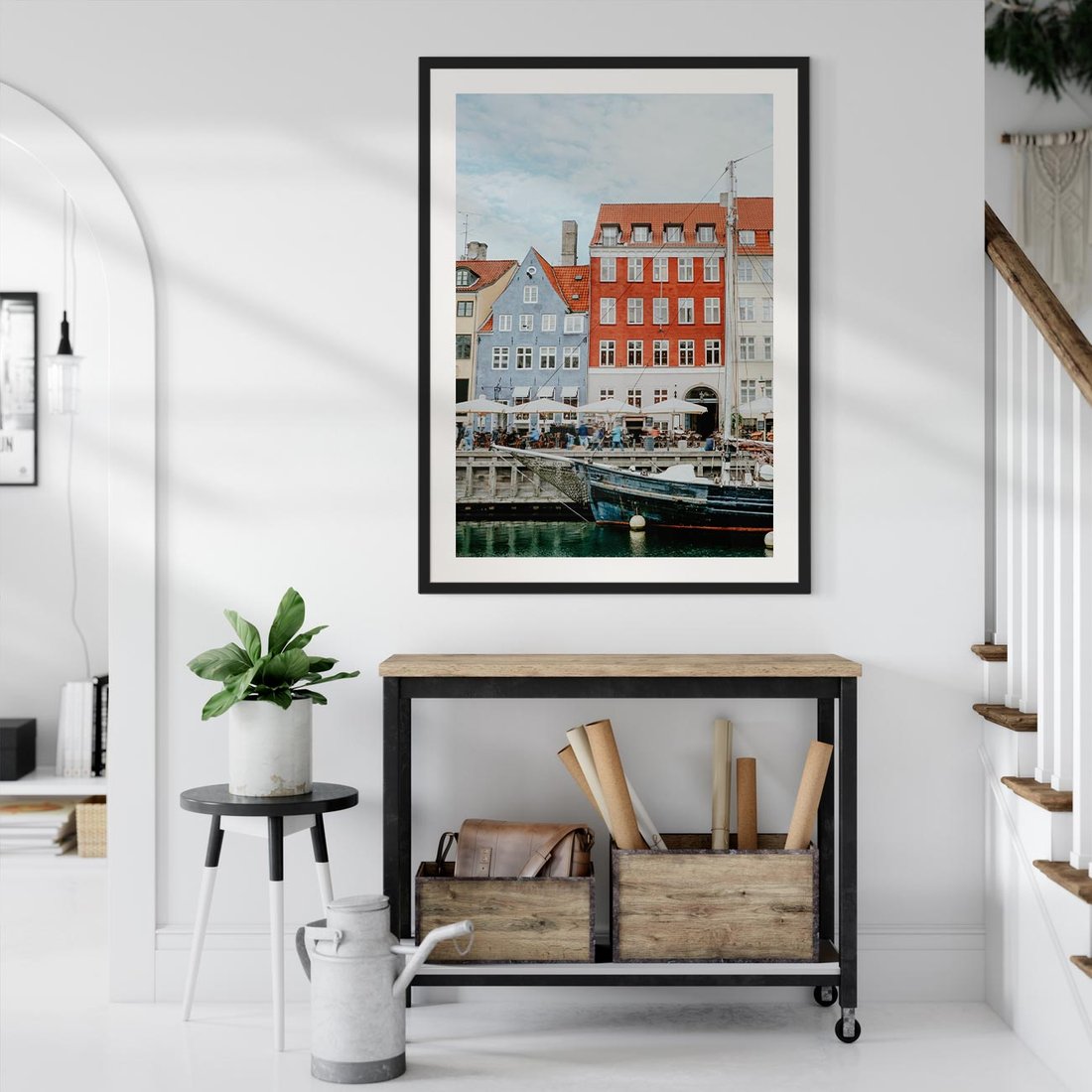 Poczuj miejską dynamikę Kopenhagi, stolicy Danii, za pomocą tego obrazu. Dodaj do swojego wnętrza nutkę skandynawskiego uroku i energii miejskiego życia.