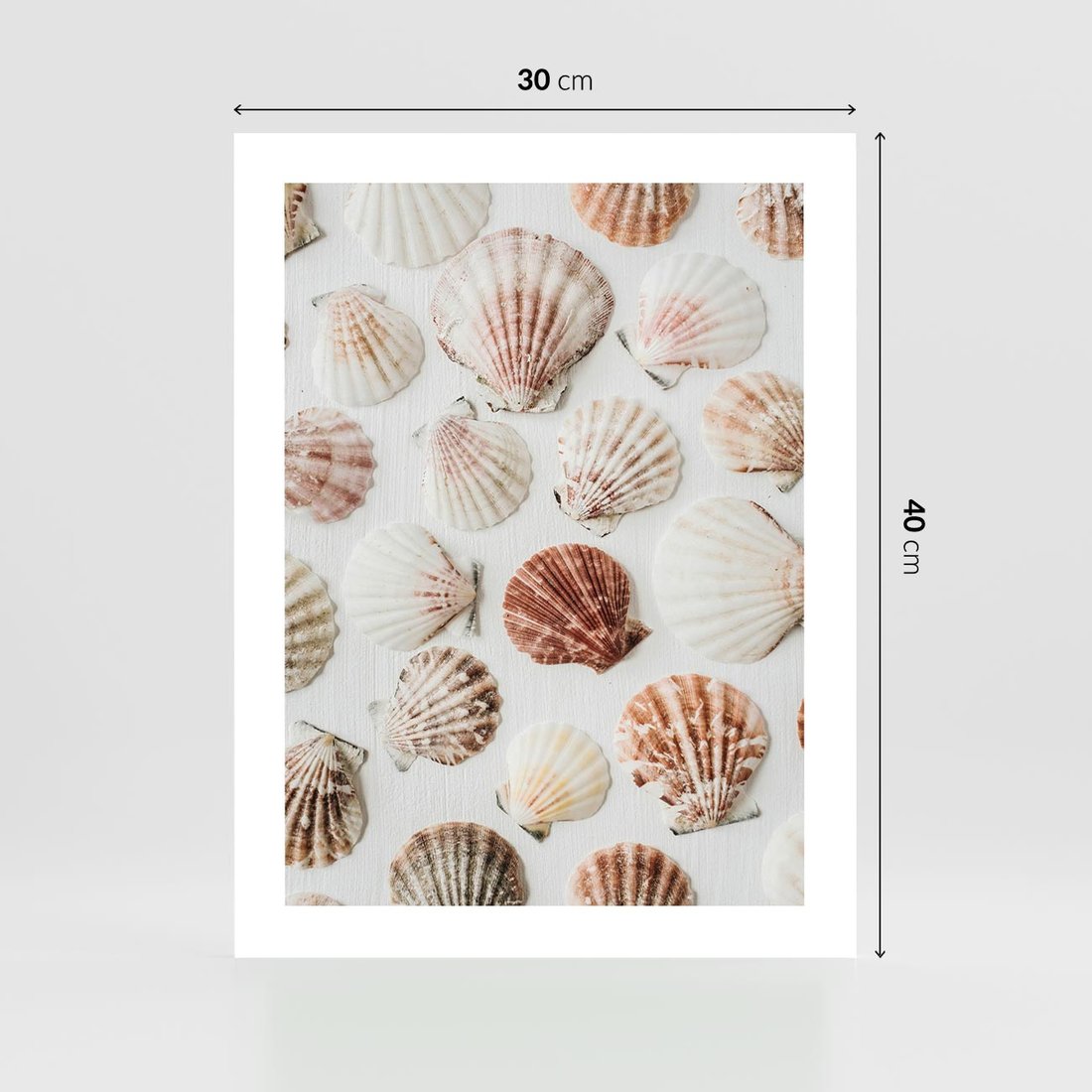 Plakat bez ramy 30x40 - Morska Delikatność: Muszelki na Białym Tle - kompozycja, morskie muszelki na białym tle