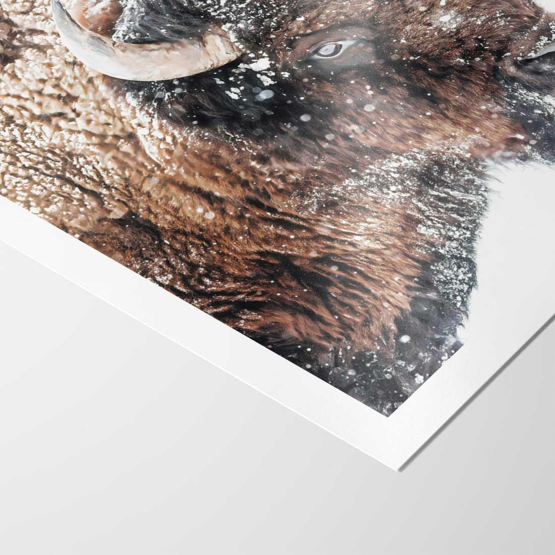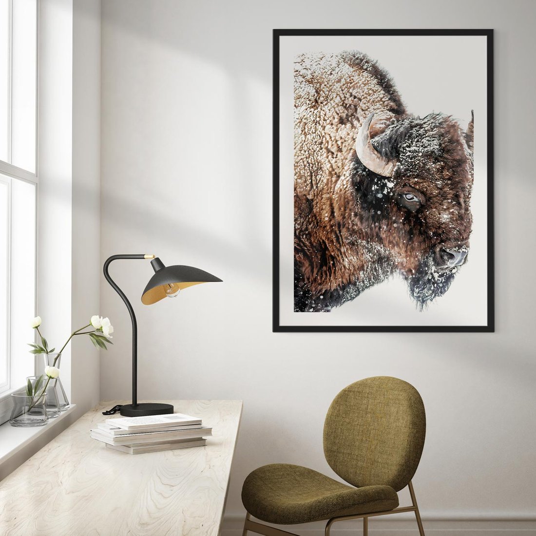Plakat bez ramy 30x40 - Obraz Dzikiej Przyrody w Śnieżnym Otoczeniu - żubr, śnieg