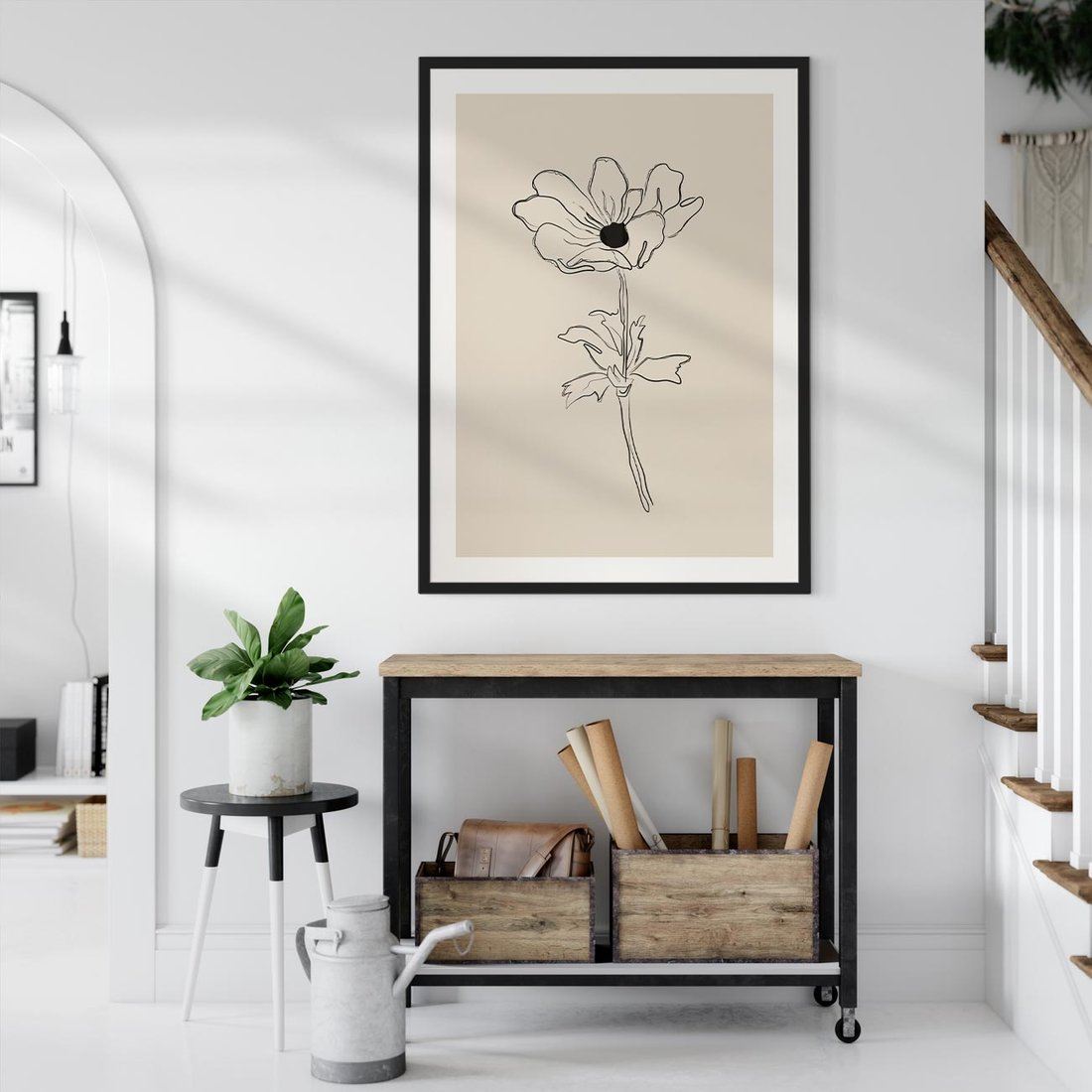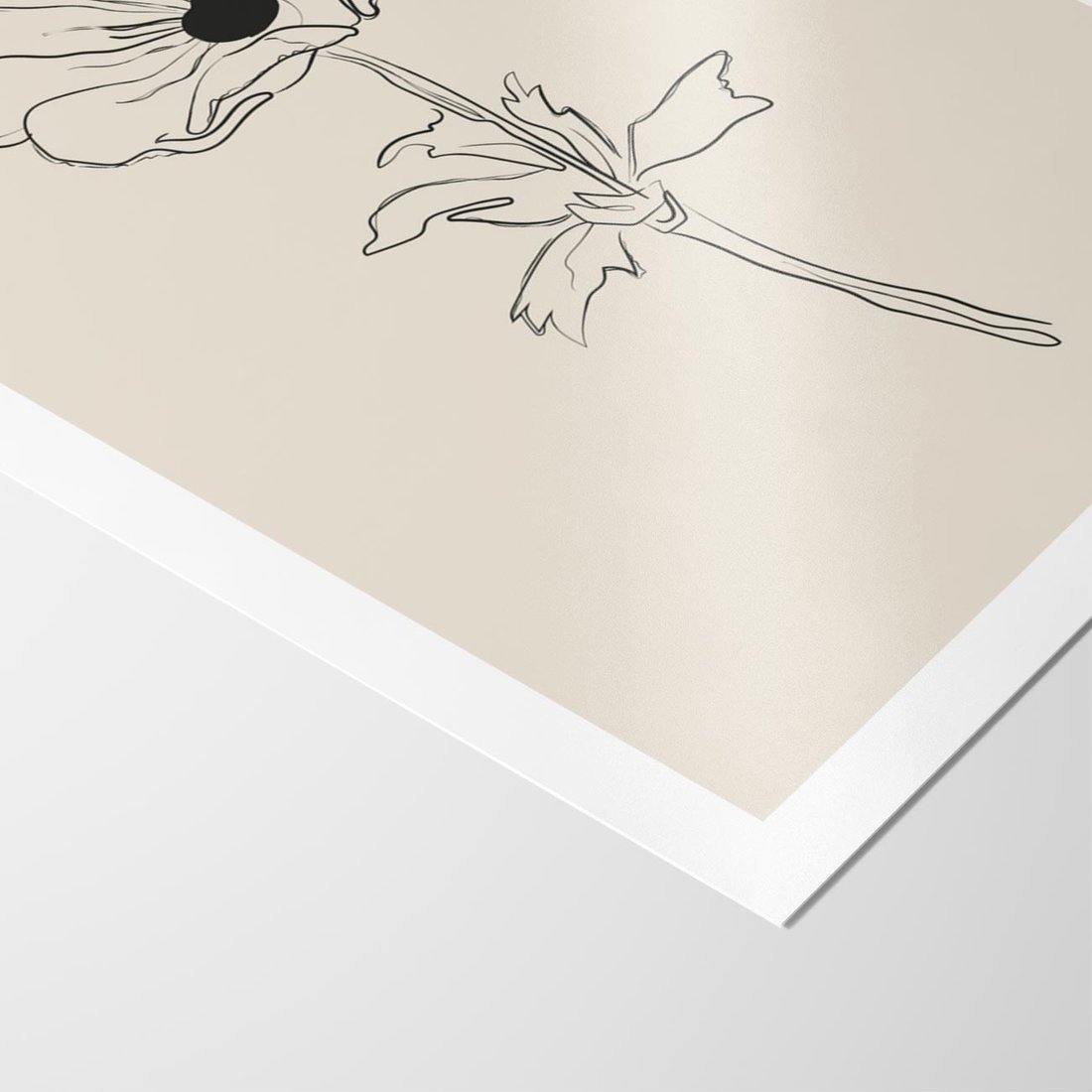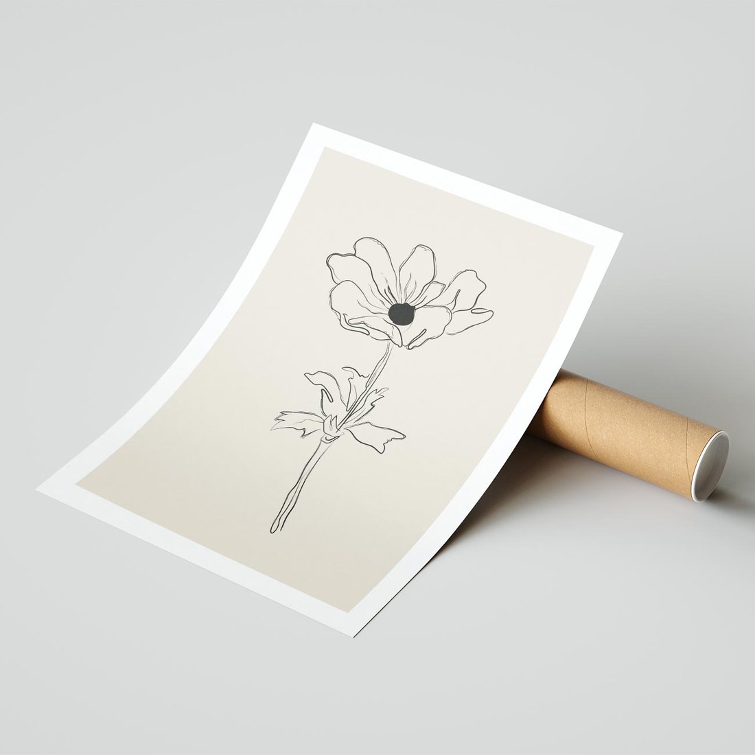 Ten plakat prezentuje minimalistyczny szkic kwiatu, oddając jego piękno poprzez prostotę linii. Sztuka ta emanuje spokojem i delikatnością, tworząc harmonijną kompozycję, która zachwyca swoją subtelnością i wydobywa esencję natury, dodając czarujący akcent do Twojej przestrzeni.