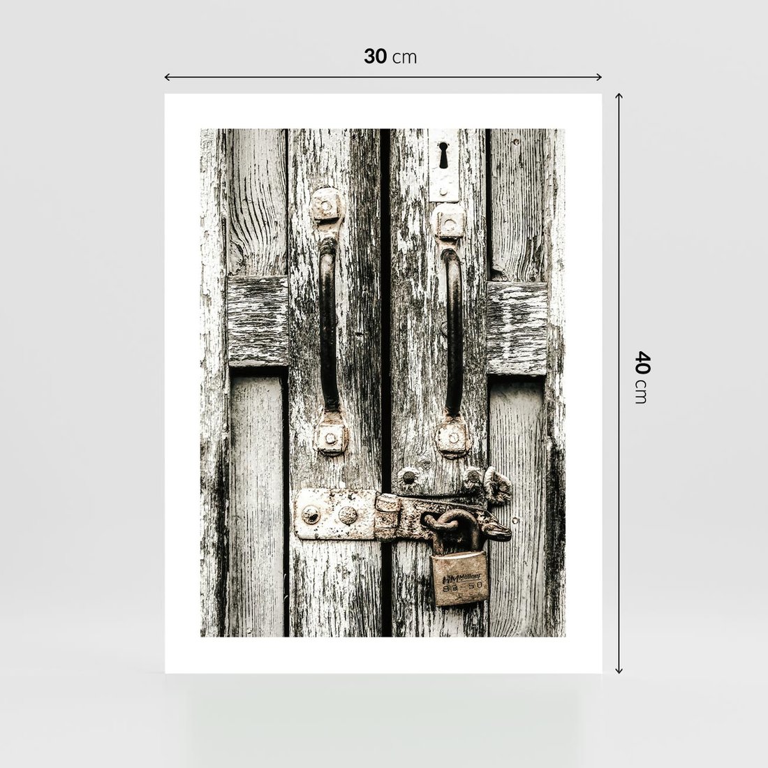 Plakat bez ramy 30x40 - Retro Drzwi: Zamknięta Tajemnica - stare drzwi, kłódka