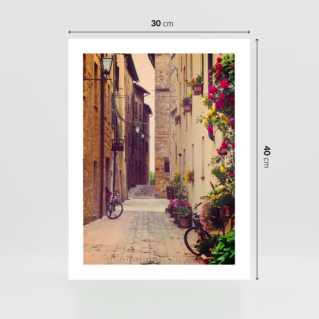 Plakat bez ramy 30x40 - Rowerowa przygoda w uliczkach pełnych perspektywy - uliczka, perspektywa