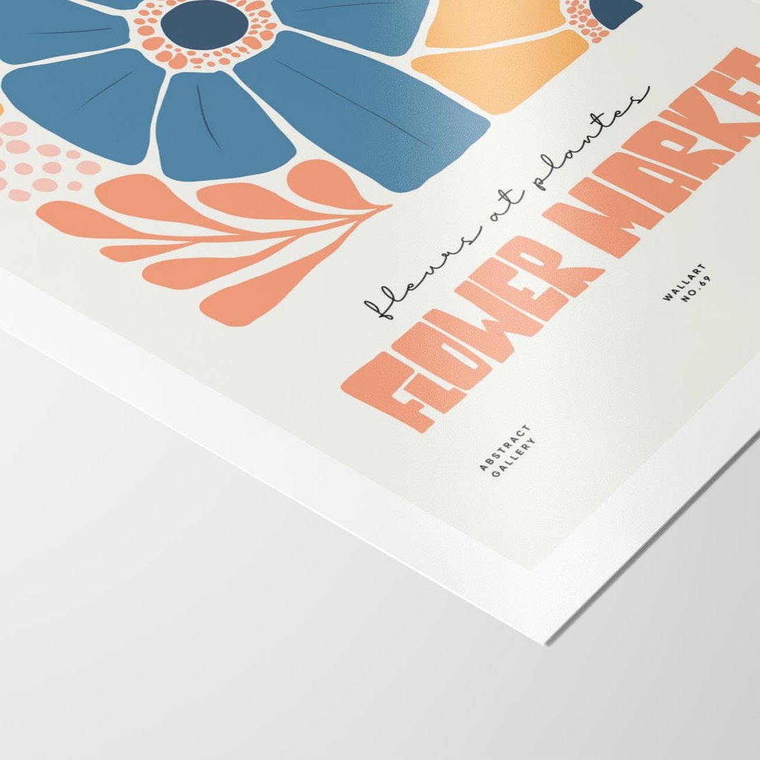 Ten nowoczesny plakat ukazuje kwiaty w kontekście sztuki modern, wzbogacając kompozycję o wyrazistą typografię. Sztuka ta tworzy interakcję między naturą a słowami, tworząc unikalną przestrzeń refleksji i estetyki.