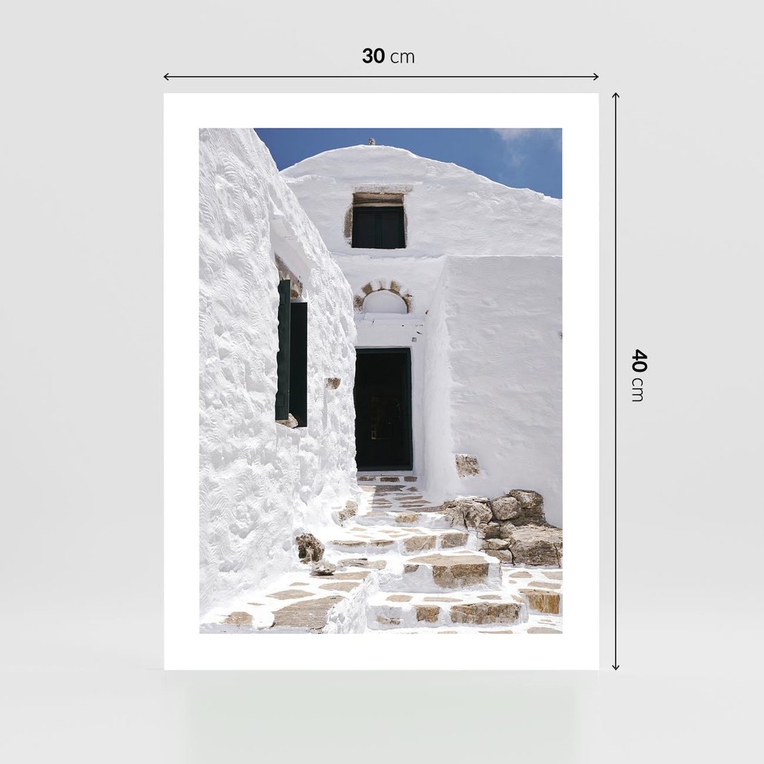 - Plakat bez ramy 30x40 - Santorini - Grecja błękitem malowana