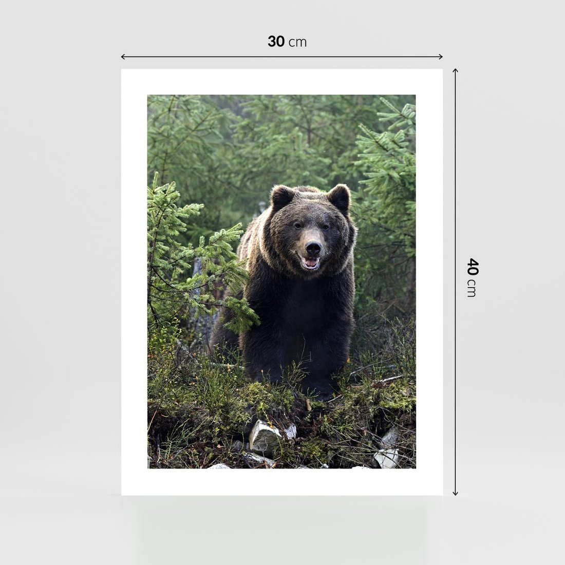 Plakat bez ramy 30x40 - Spotkanie z Niedźwiedziem w Lesie - niedźwiedź, las