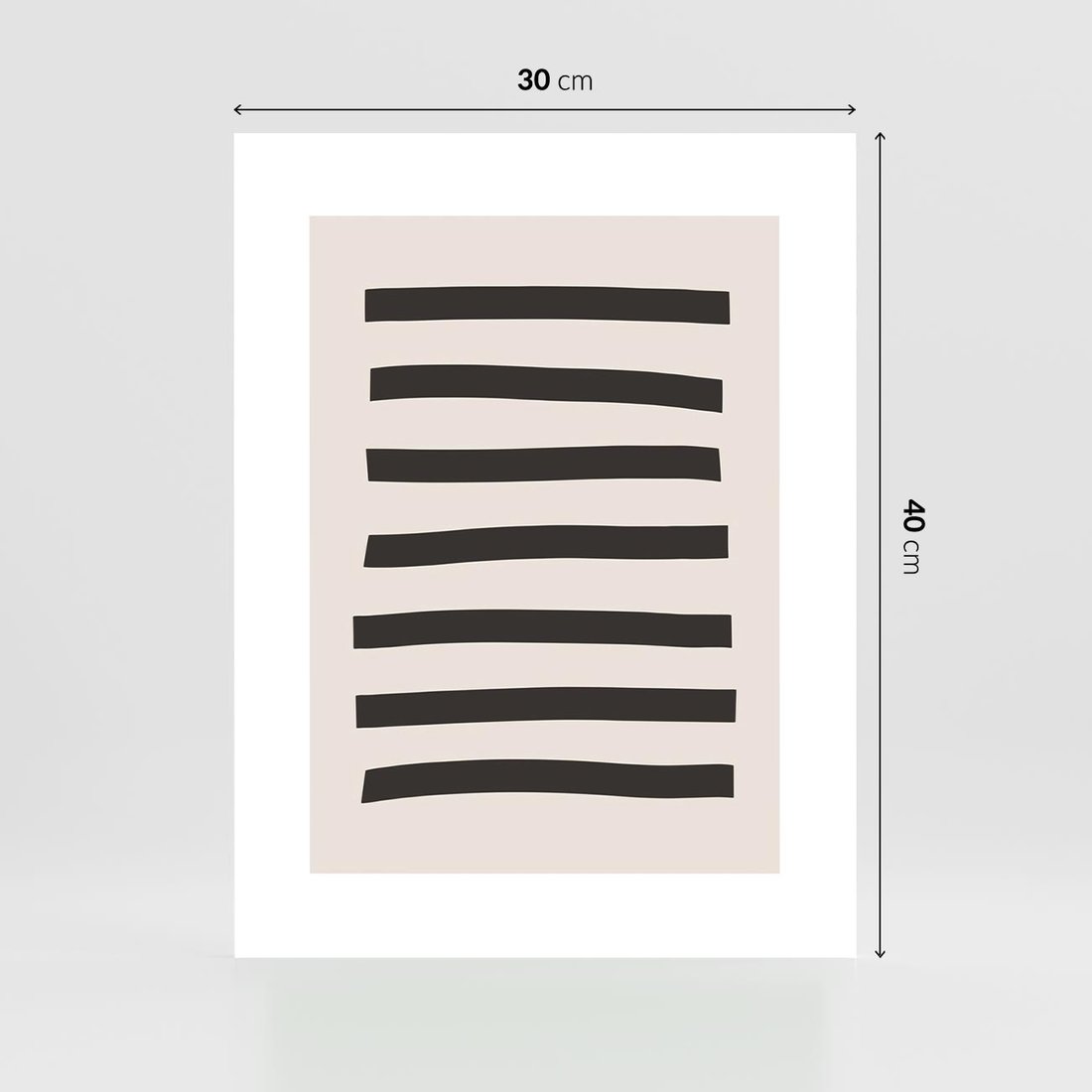 Nasz minimalistyczny plakat to eleganckie czarne pasy na spokojnym beżowym tle. To wyjątkowe połączenie tworzy harmonijny akcent, idealny do wprowadzenia do Twojej przestrzeni spokoju i nowoczesnej estetyki minimalizmu.