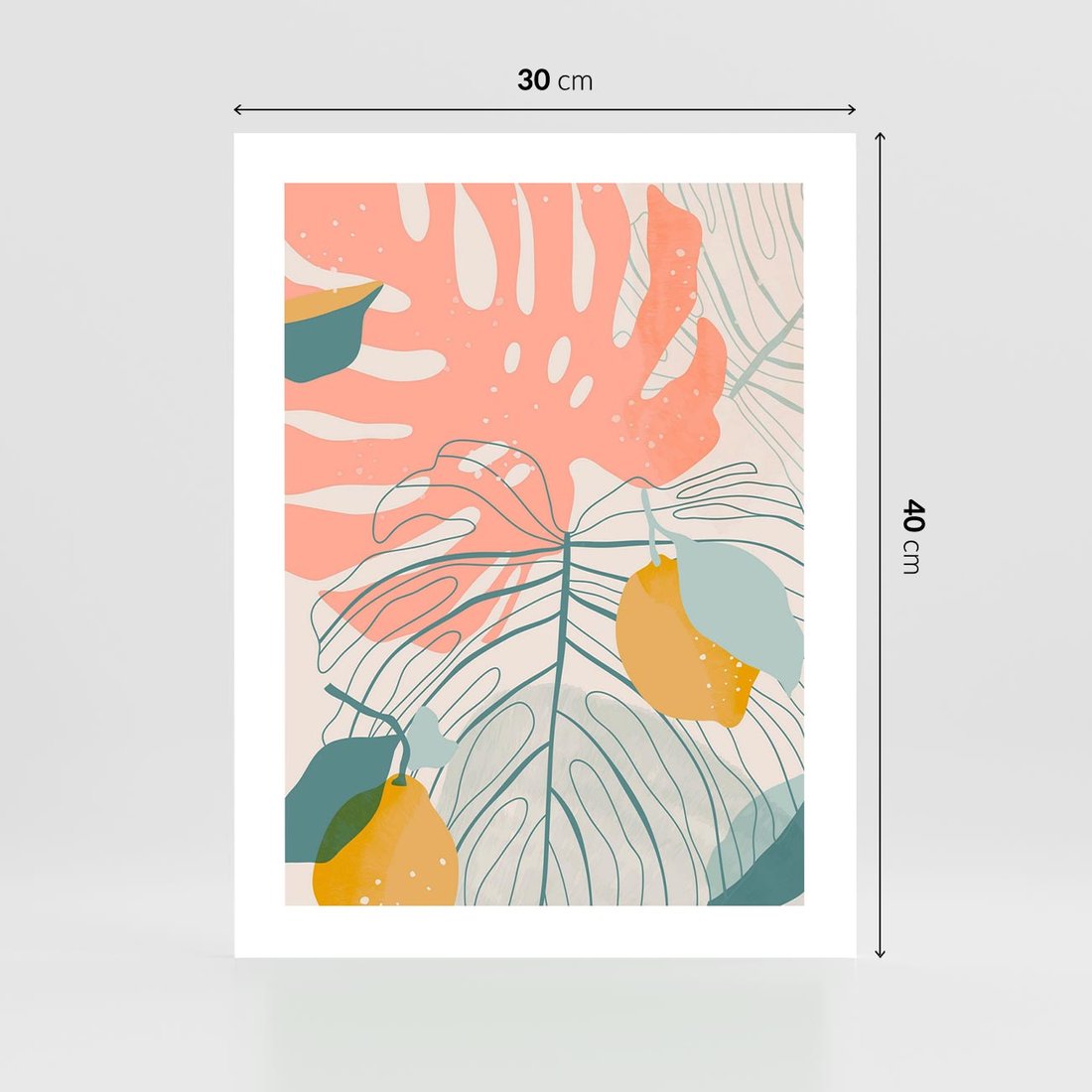 - Plakat bez ramy 30x40 - Sztuka Natury: Liście Monstery w Pastelach