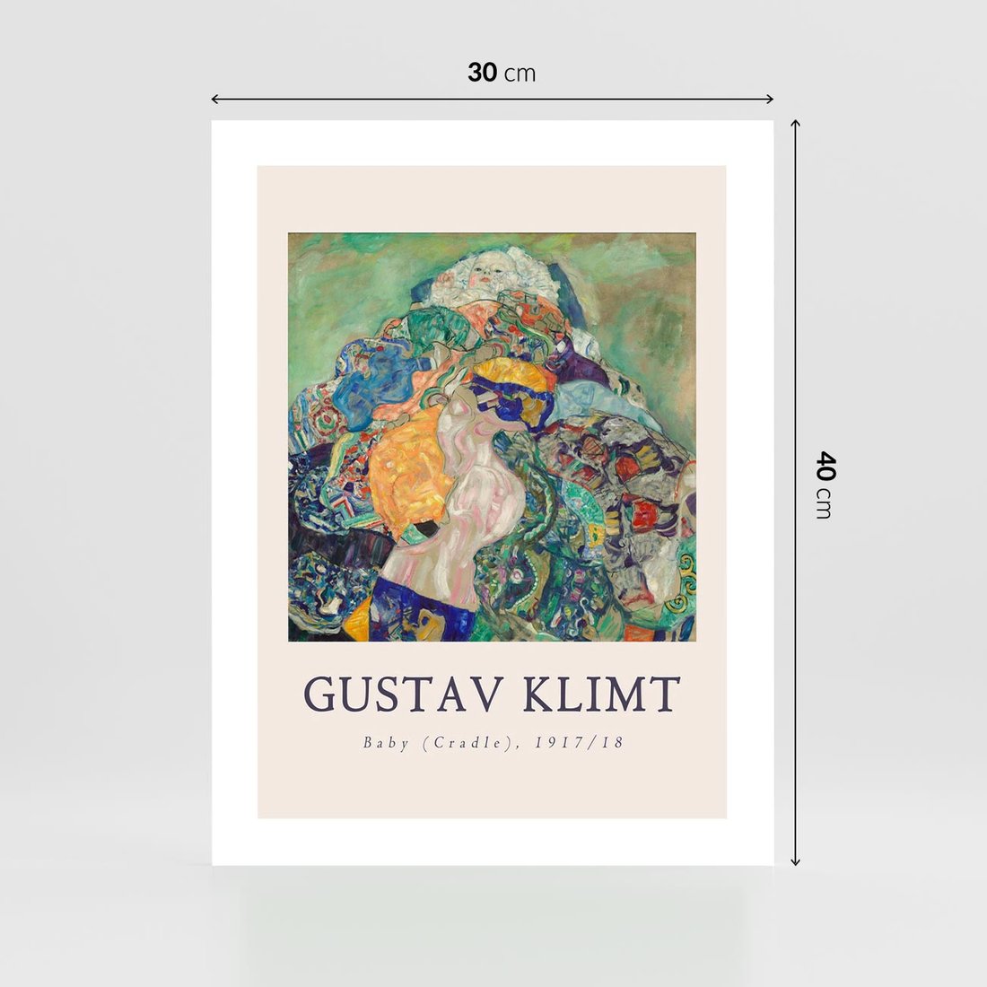 Reprodukcja dzieła "Dziecko" autorstwa Gustava Klimta z dodatkiem typografii. Obraz ten ukazuje charakterystyczny styl artysty i jest uzupełniony odpowiednią typografią.