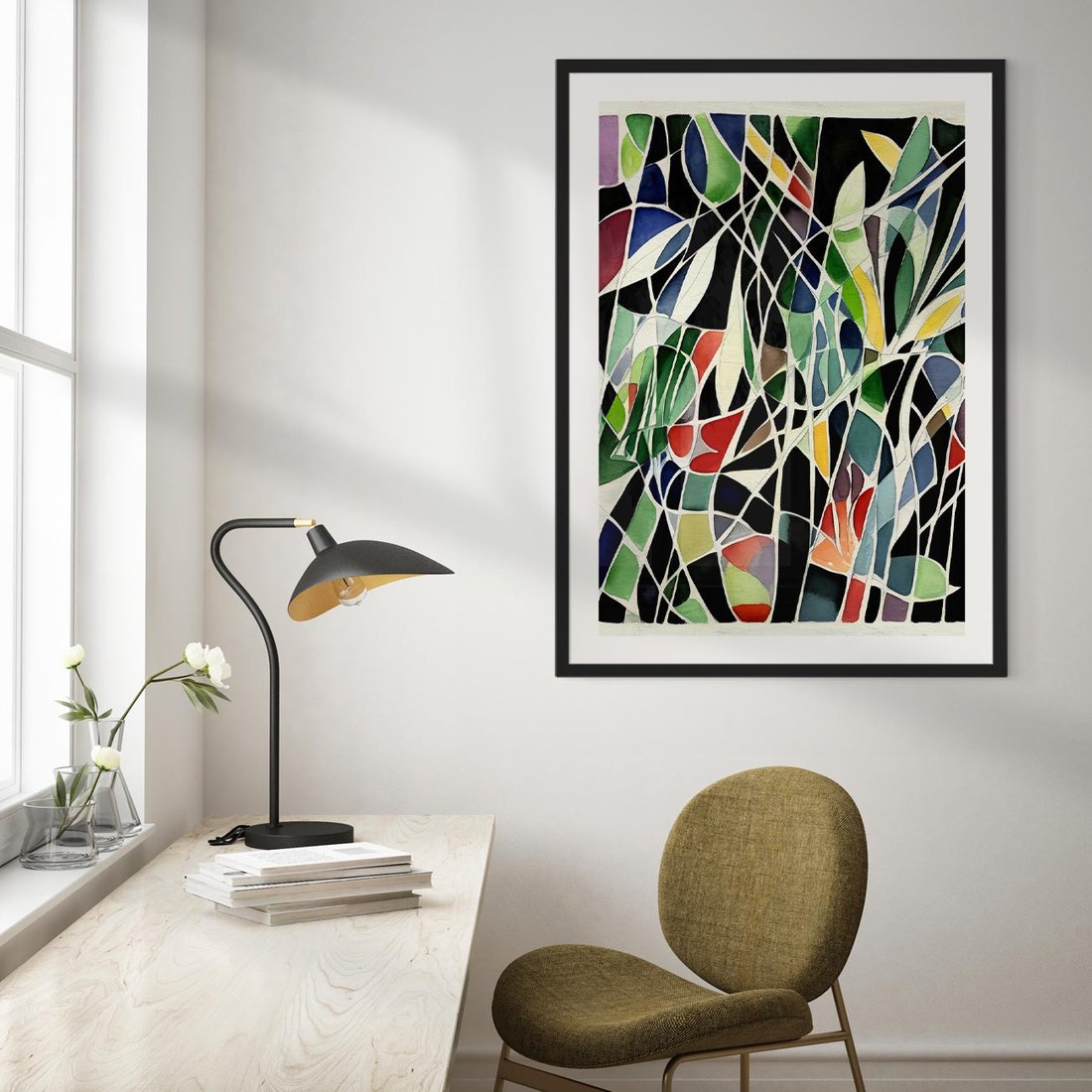 Ten abstrakcyjny akwarelowy obraz jest pełen intensywnych kolorów, kształtów i plam, które tworzą dynamiczną kompozycję. Kontrast między intensywnymi kolorami a czernią nadaje temu dziełu sztuki wyrazisty charakter. Obraz ten jest nie tylko abstrakcyjny, ale także pełen energii i ekspresji. Może stanowić doskonałą dekorację dla tych, którzy cenią sobie sztukę abstrakcyjną i chcą wprowadzić do swojego wnętrza kolorowe i dynamiczne akcenty.