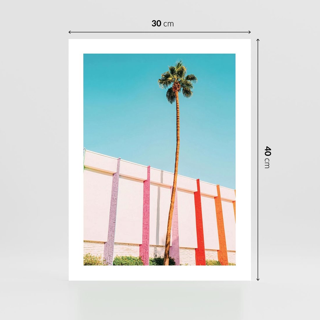 Plakat bez ramy 30x40 - Tropikalny Kontrast - palma na tle błękitnego nieba, kolorowy mur