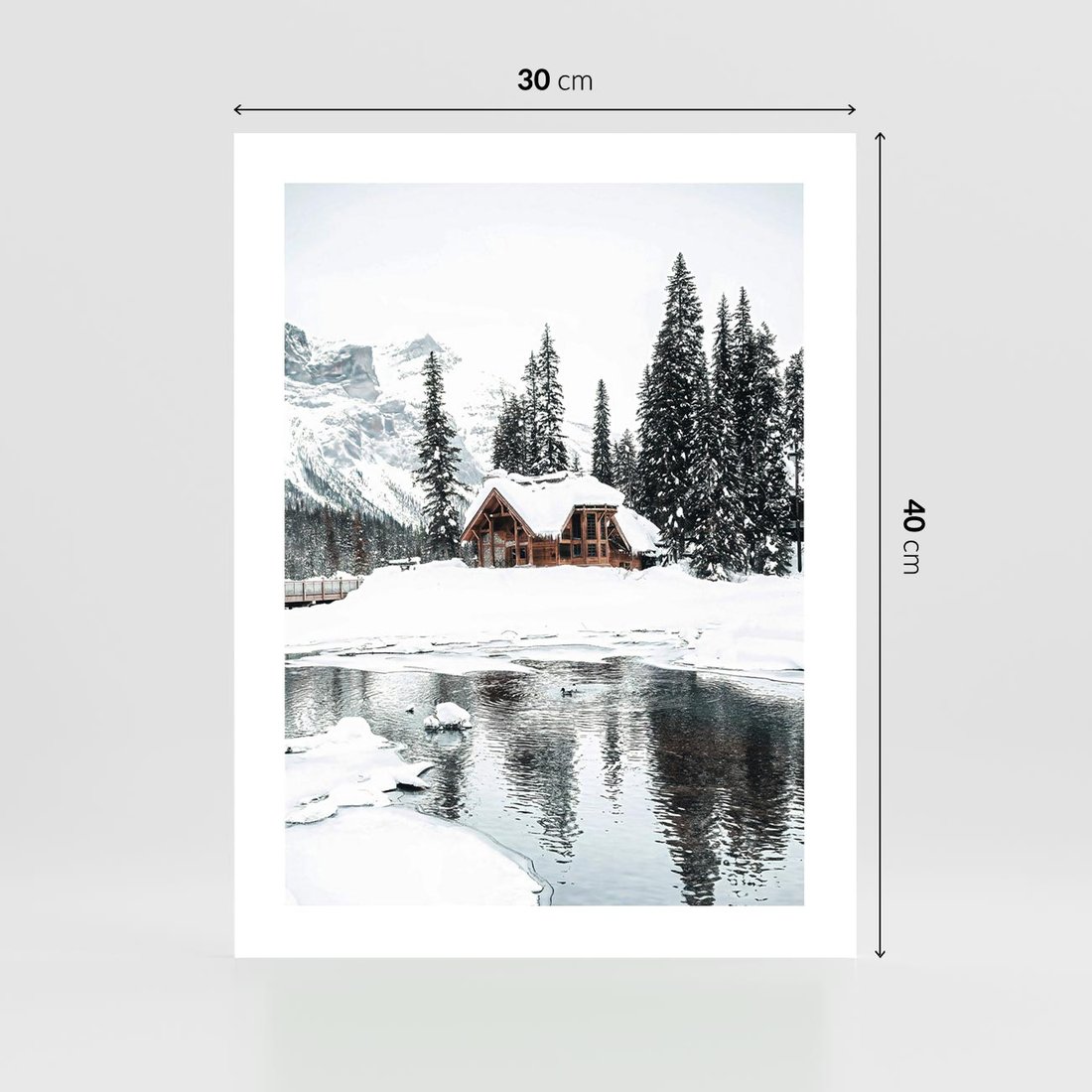 Plakat bez ramy 30x40 - Urok Zimowego Krajobrazu - domek w górach, zima