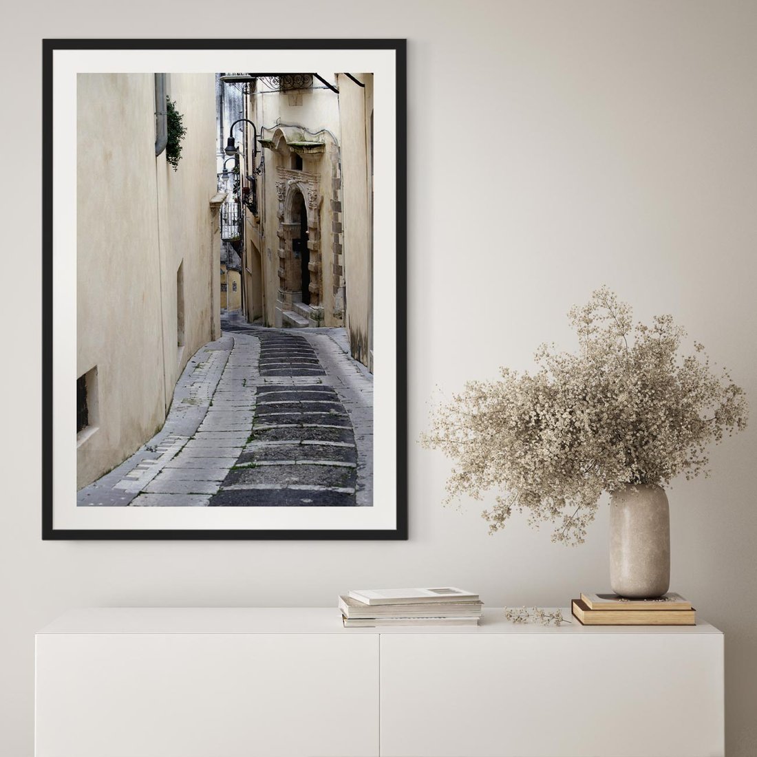 Przenieś się do malowniczego włoskiego miasteczka dzięki temu urokliwemu obrazowi przedstawiającemu uliczkę. Kamienne budynki, kolorowe fasady i włoski urok tworzą atmosferę nostalgii i romantyzmu. Ta kompozycja dodaje uroku i tęsknoty za włoską atmosferą, idealna dla miłośników podróży i włoskiego stylu życia.