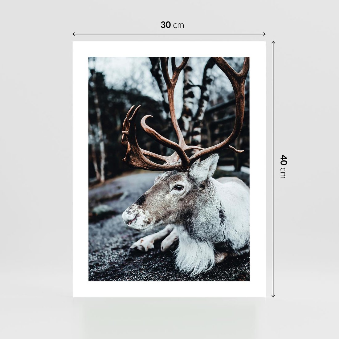 Plakat bez ramy 30x40 - W Zimowej Krainie - renifer, zima